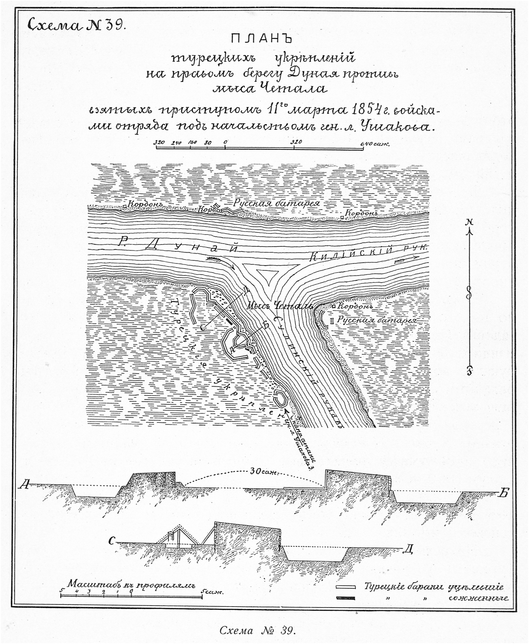 Турецкие укрепления на правом берегу Дуная против мыса Четала, взятые приступом 11 марта 1854 года войсками отряда под начальством генерал-лейтенанта Ушакова
