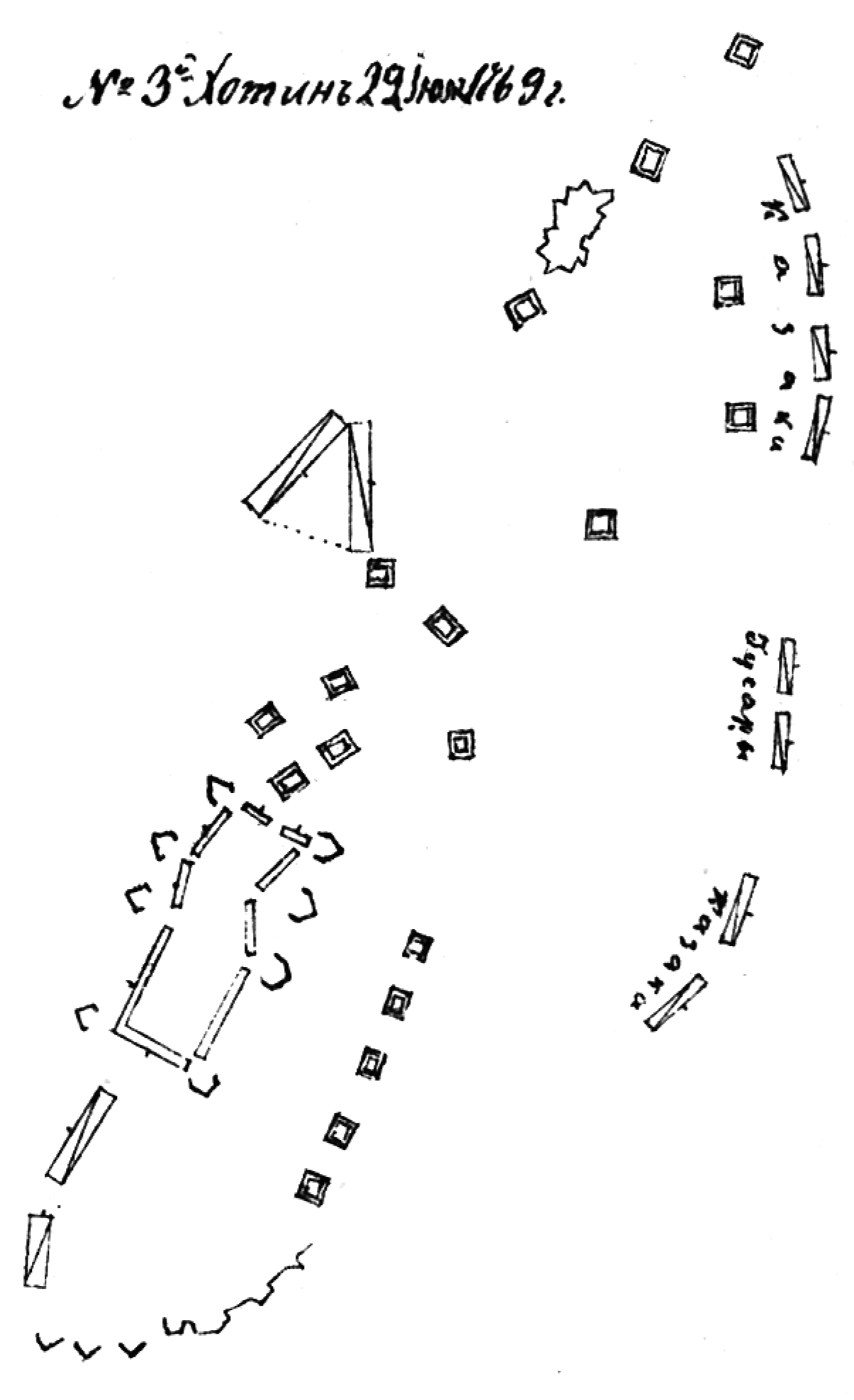 Чертежи. Тактические построения в кампанию 1769-1774 годов. №3. Хотин 29 июня 1769 года