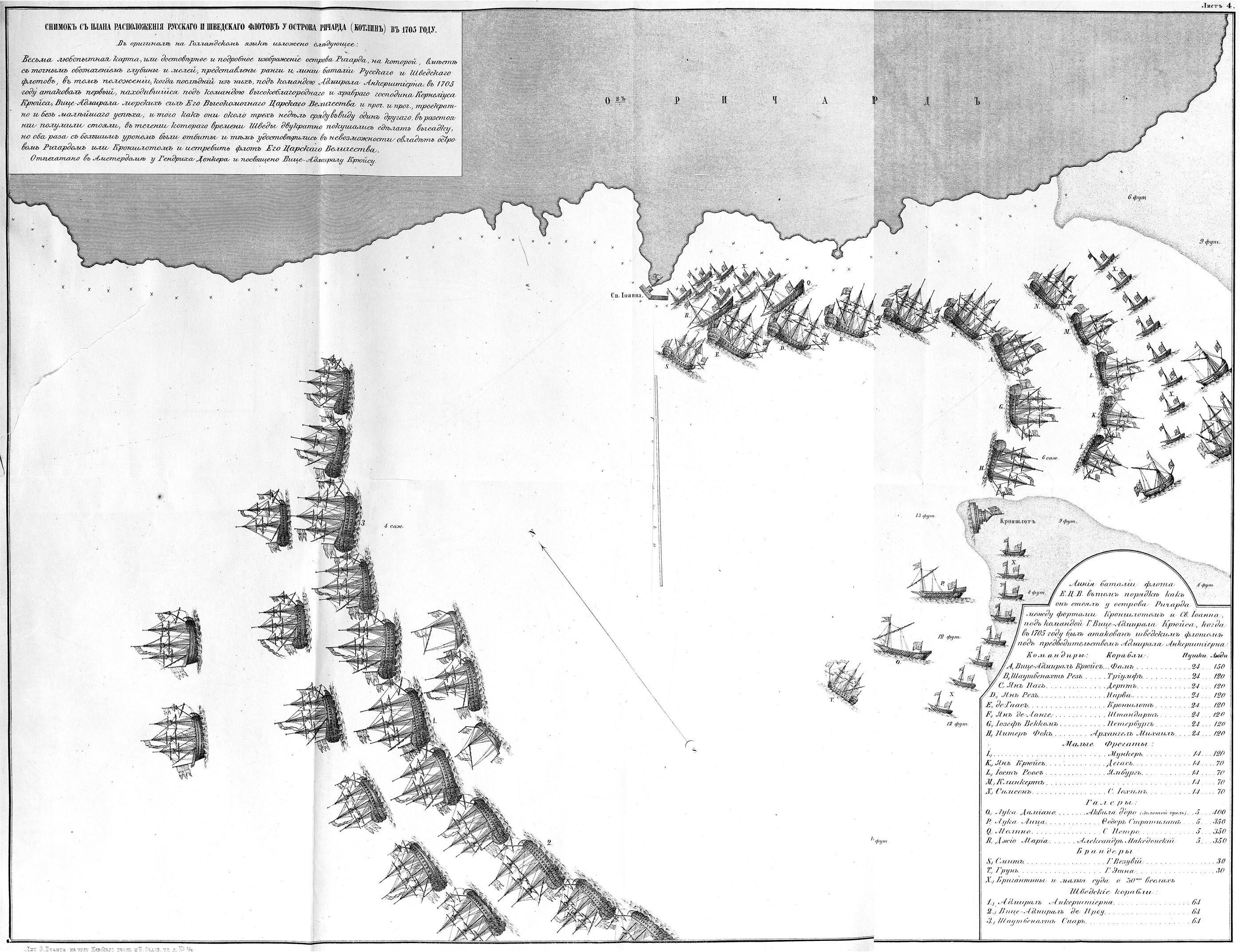 Снимок с плана расположения русского и шведского флотов у острова Ричарда (Котлин) в 1705 г.
