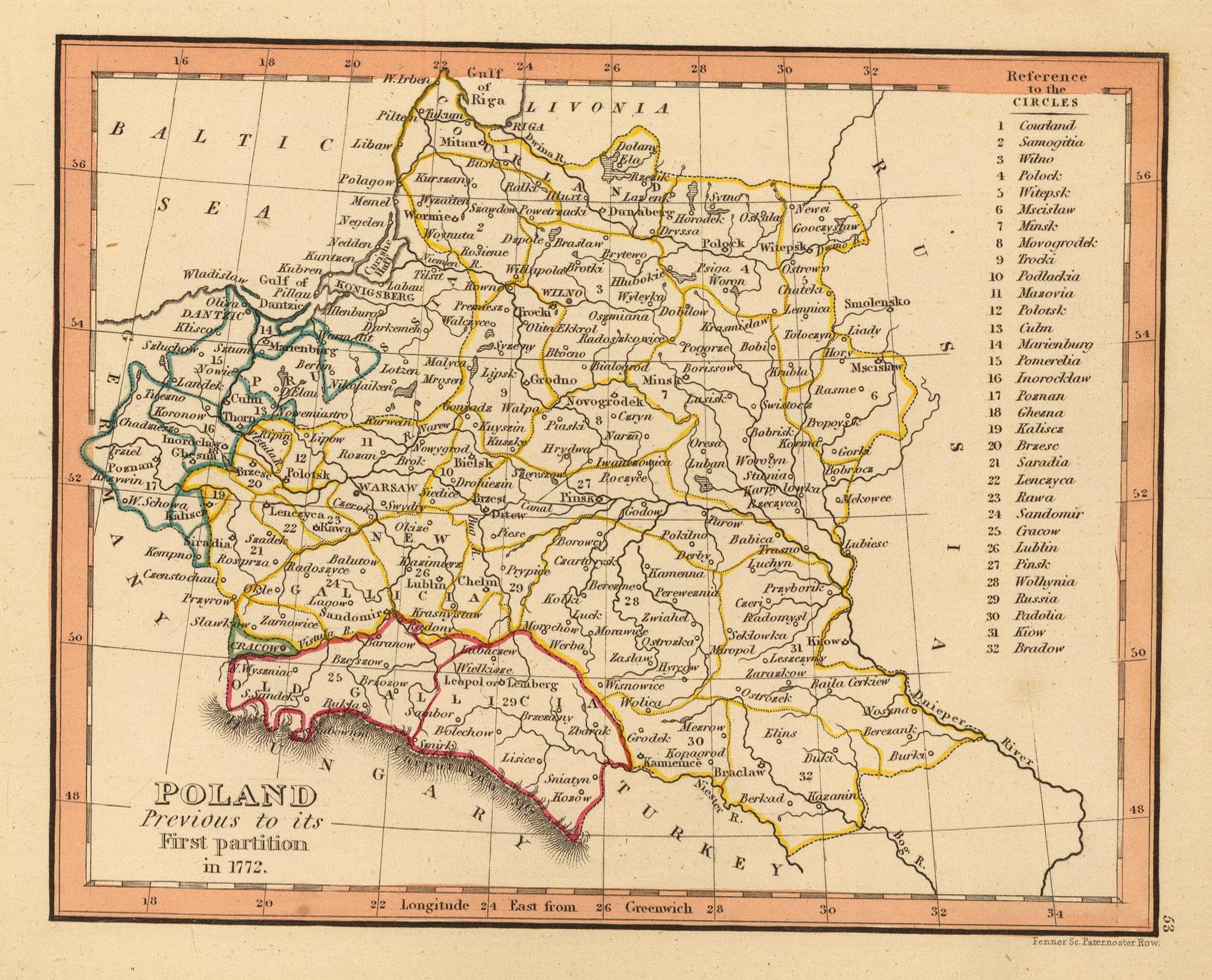 Карта Польши перед ее первым разделом в 1772 году