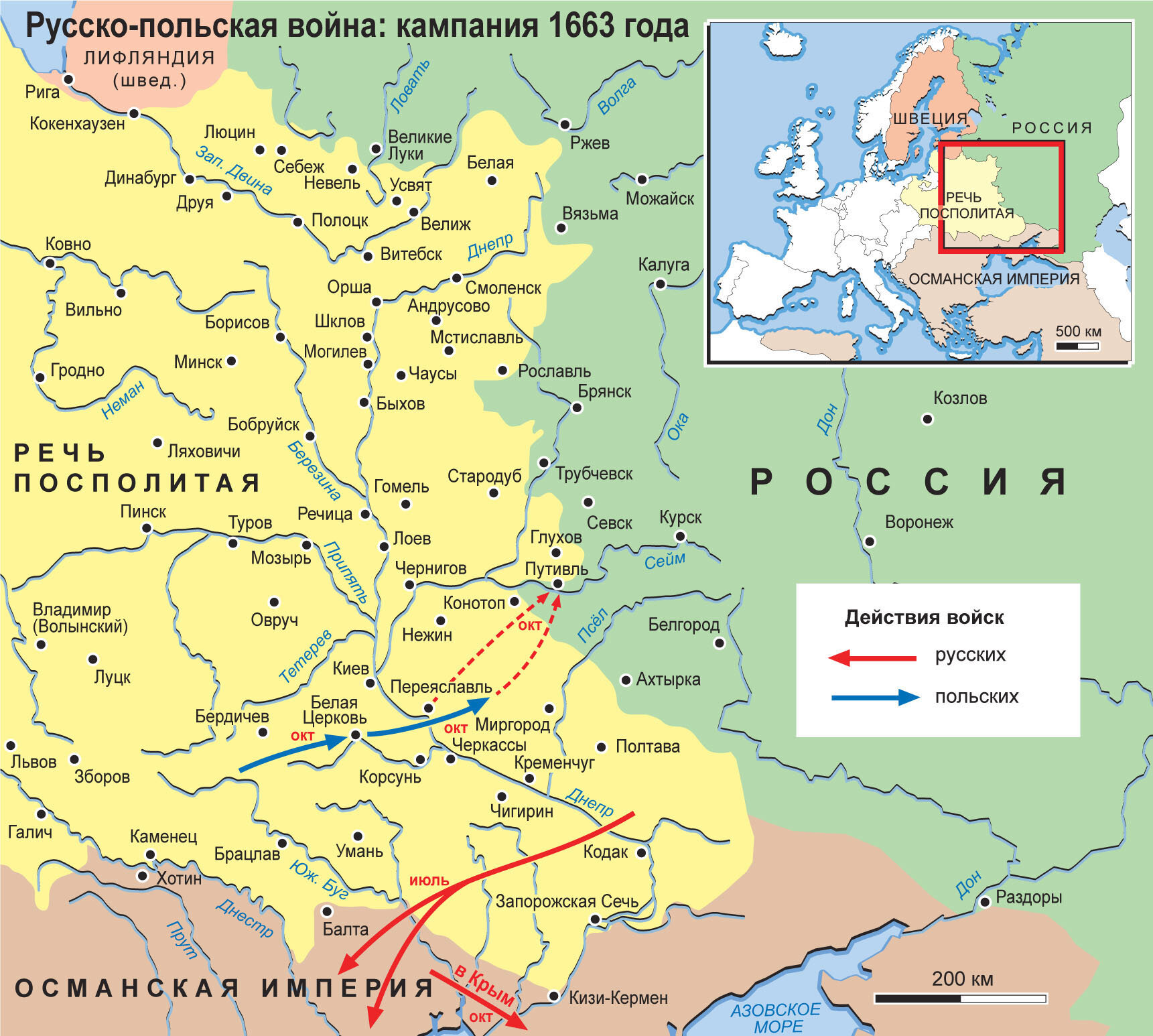 Карта: Русско-польская война 1654 – 1667. Кампания 1663 г.