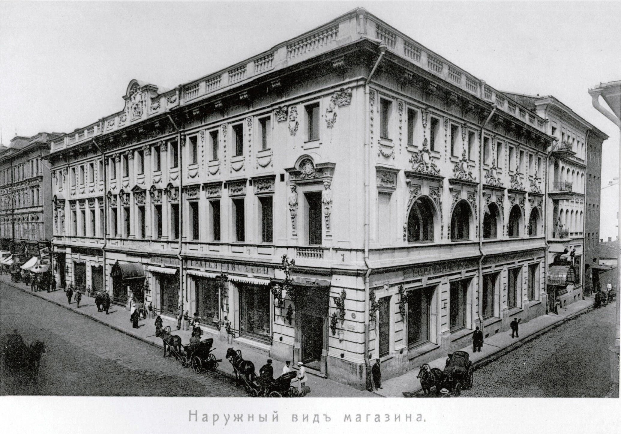 1901 г. 5 февраля (23 января по ст. стилю) В Москве, на Тверской улице, 14, состоялось открытие "Магазина Г. Г. Елисеева и погреба русских и иностранных вин". В конце 18 века статс-секретарь Екатерины Великой пригласил Матвея Казакова для строительства дома для своей жены Е.Козицкой (именно по ее фамилии назван соседний Козицкий переулок). После ее смерти дом перешел к ее дочери-княгине А.Г.Белосельской-Белозерской, которая прожила нем до самой смерти. Ее дочь, княгиня Зинаида Григорьевна Волконская, позднее открыла здесь салон, в котором собирались известные художники и литераторы, здесь читали свои произведения А.С.Пушкин, Е.А.Баратынский, Д.В.Веневетинов, П.А.Вяземский, Адам Мицкевич
