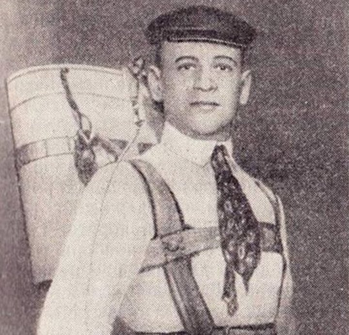 Г.Е. Котельников со своим ранцевым парашютом в 1911 г.