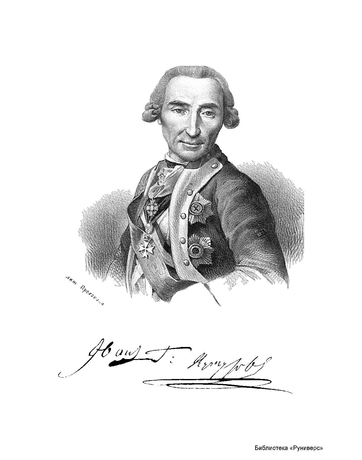 Портрет Ивана Логиновича Голенищева-Кутузова (1729— 1802) с факсисмиле его автографа