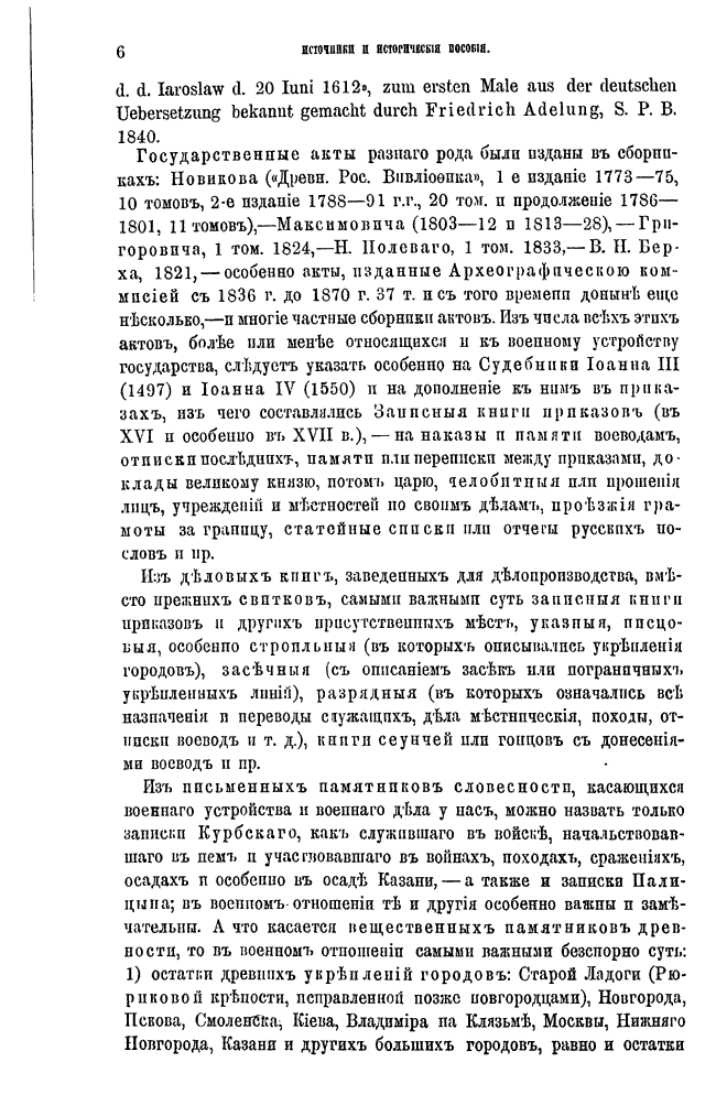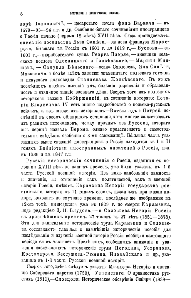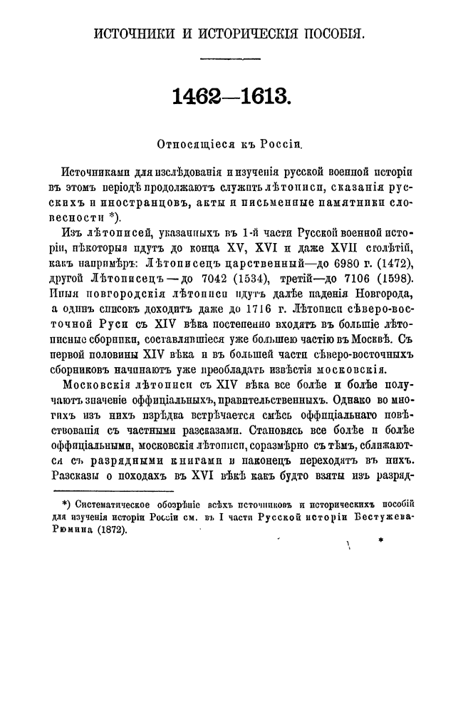 Несмотря на обилие отечественных историков во второй половине 19 века, все они описывали политическую историю страны, касаясь её военной составляющей лишь в общем. Единственным специализированным трудом явилось сочинение Зотова 1839 года, но оно представляло собой краткий очерк военных событий без подробного разбора тактики и стратегии, и составлено было не по оригинальным источникам, а по материалам трудов Карамзина, Полевого, Булгарина и других историографов того периода.