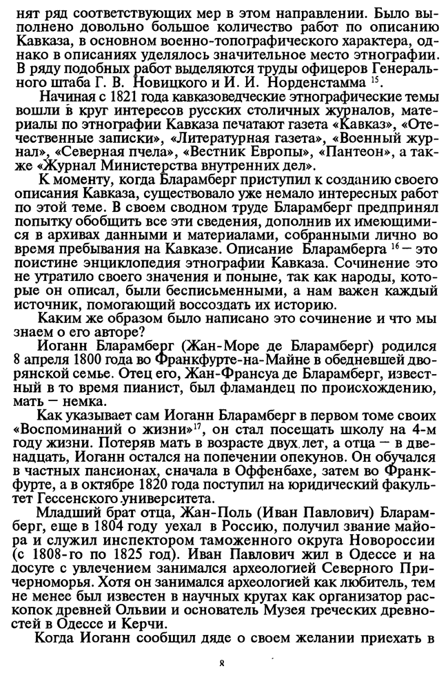 Эта книга была написана в 1834 году Иоганном Бларамбергом — офицером Генерального штаба Российской империи, служившим в Отдельном Кавказском корпусе. Еще в начале 1828 года Николай I отдал приказ о необходимости составления свода материалов о горских и кочевых народах Кавказа, что впоследствии было поручено осуществить Бларамбергу.