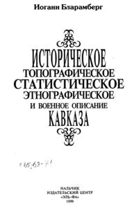 Историческое топографическое статистическое этнографическое и военное описание Кавказа