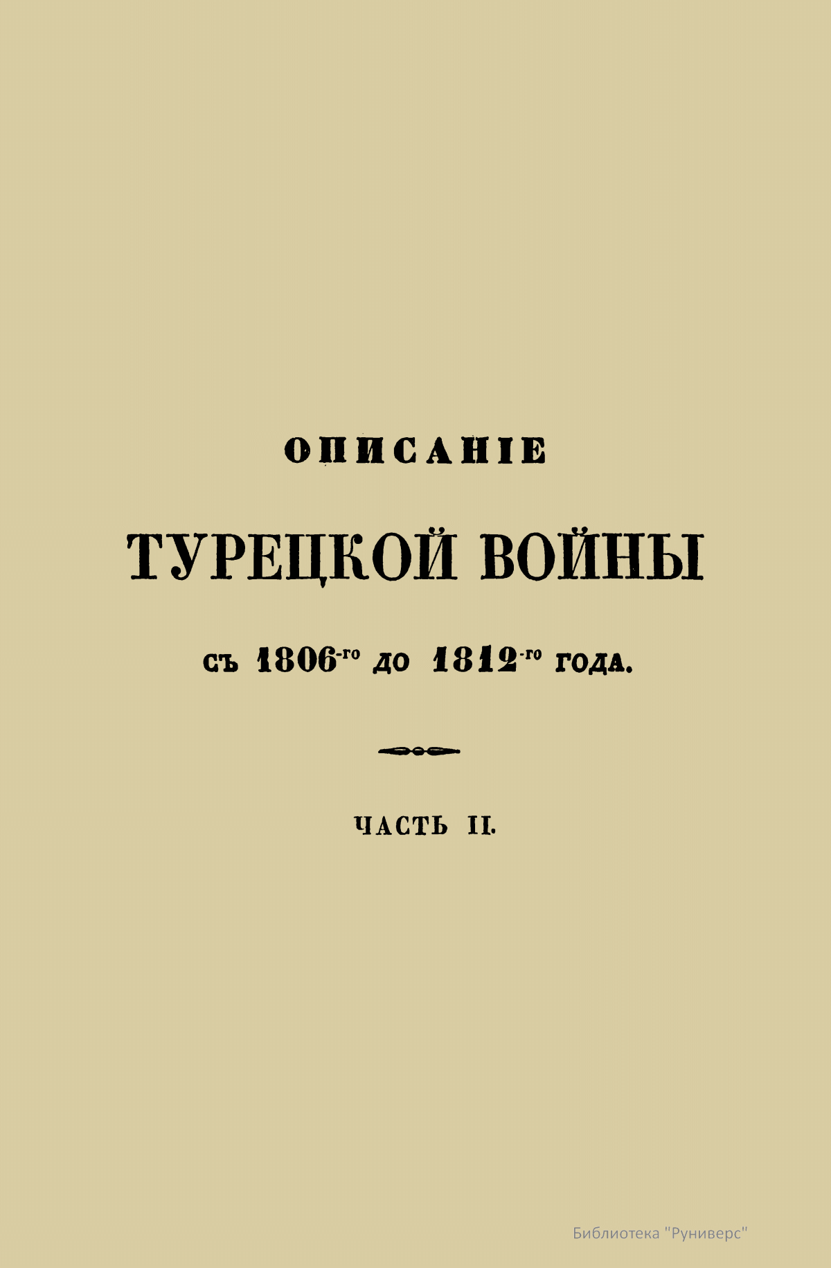 ОПИСАНІЕ ТУРЕЦКОЙ ВОЙНЫ въ ЦАРСТВОВАНІЕ ИМПЕРАТОРА АЛЕКСАНДРА, съ 1806-го до 1812-го года