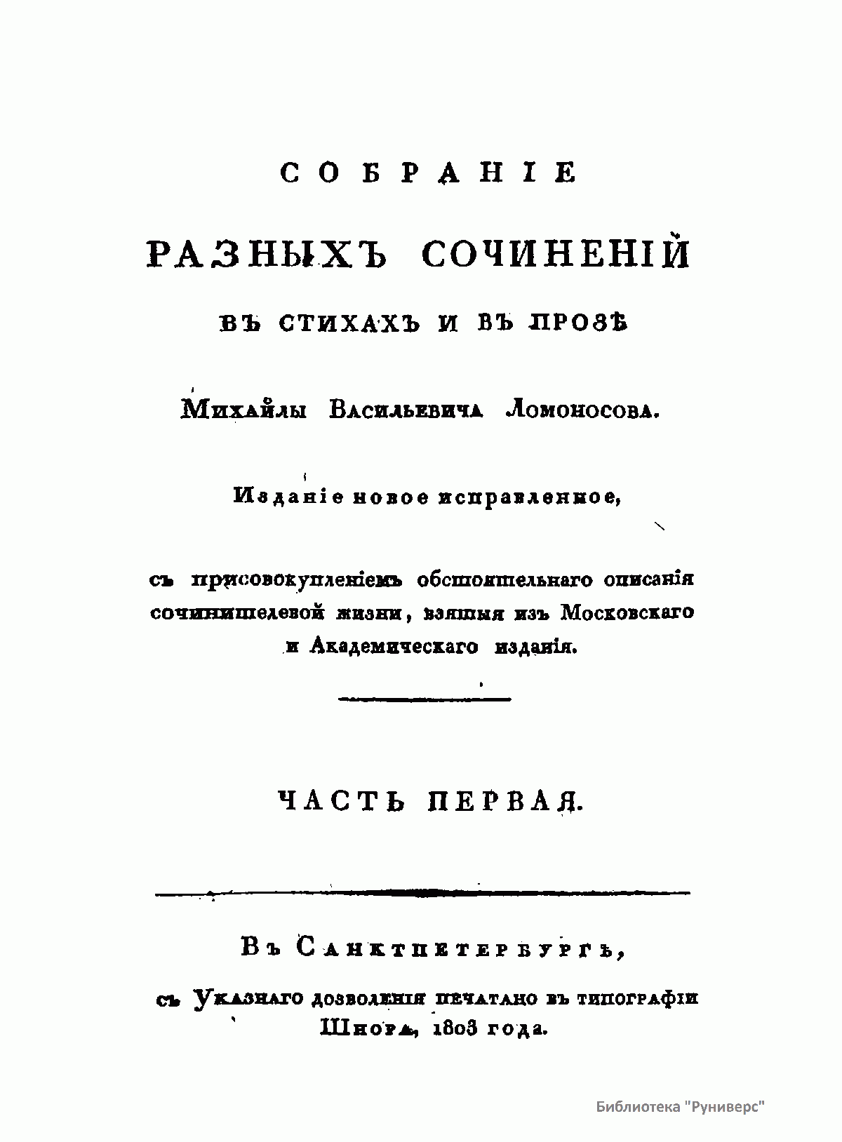 Собранiе разныхъ сочиненiй въ стихахъ и въ прозѣ Михайлы Васильевича Ломоносова