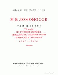 Полное собрание сочинений. Том шестой. Труды по русской истории, общественно-экономическим вопросам и географии 1747-1764 гг.
