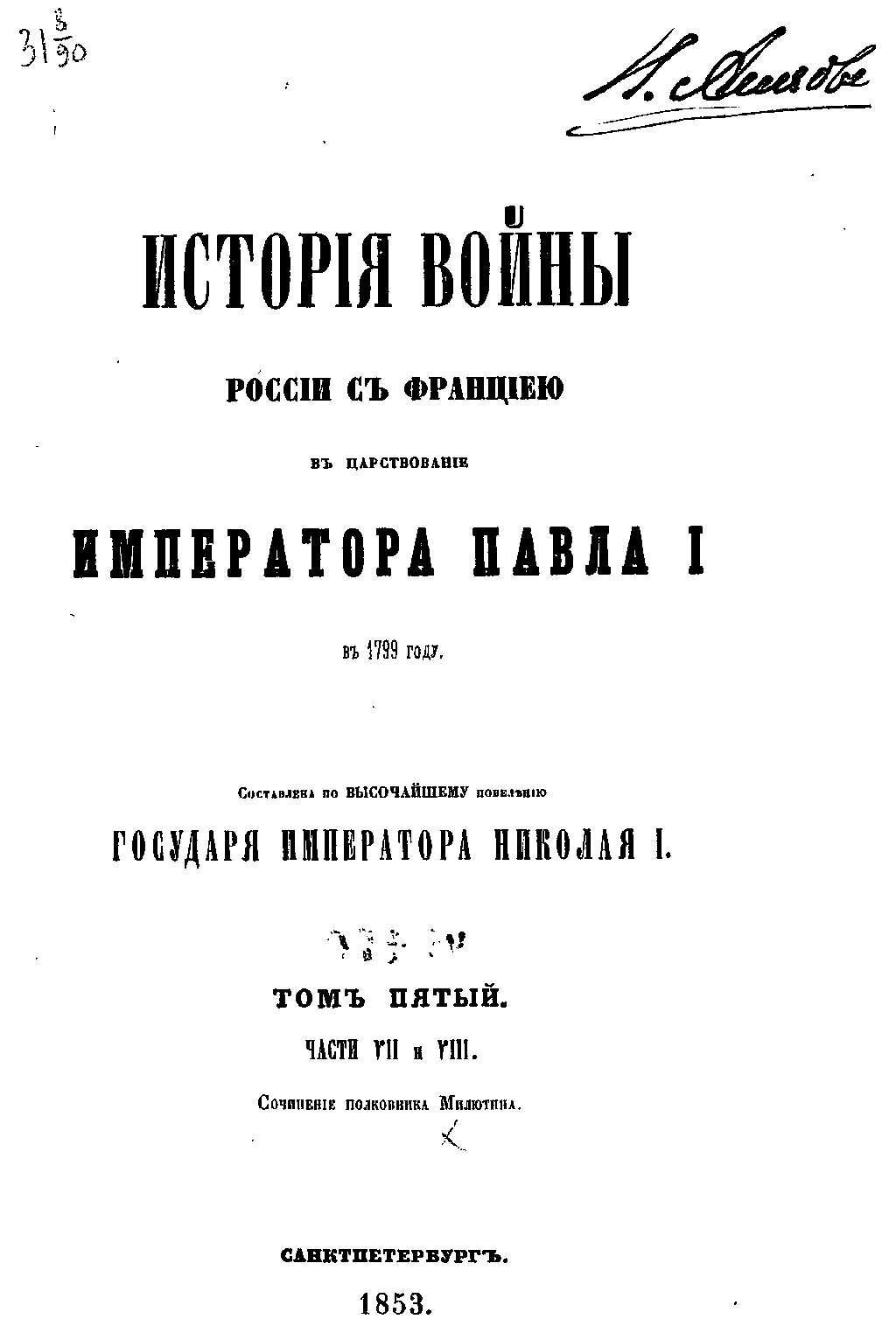 История войны России с Францией в царствование Императора Павла I в 1799 году. Том V