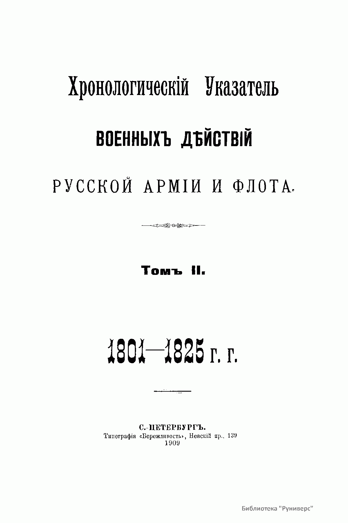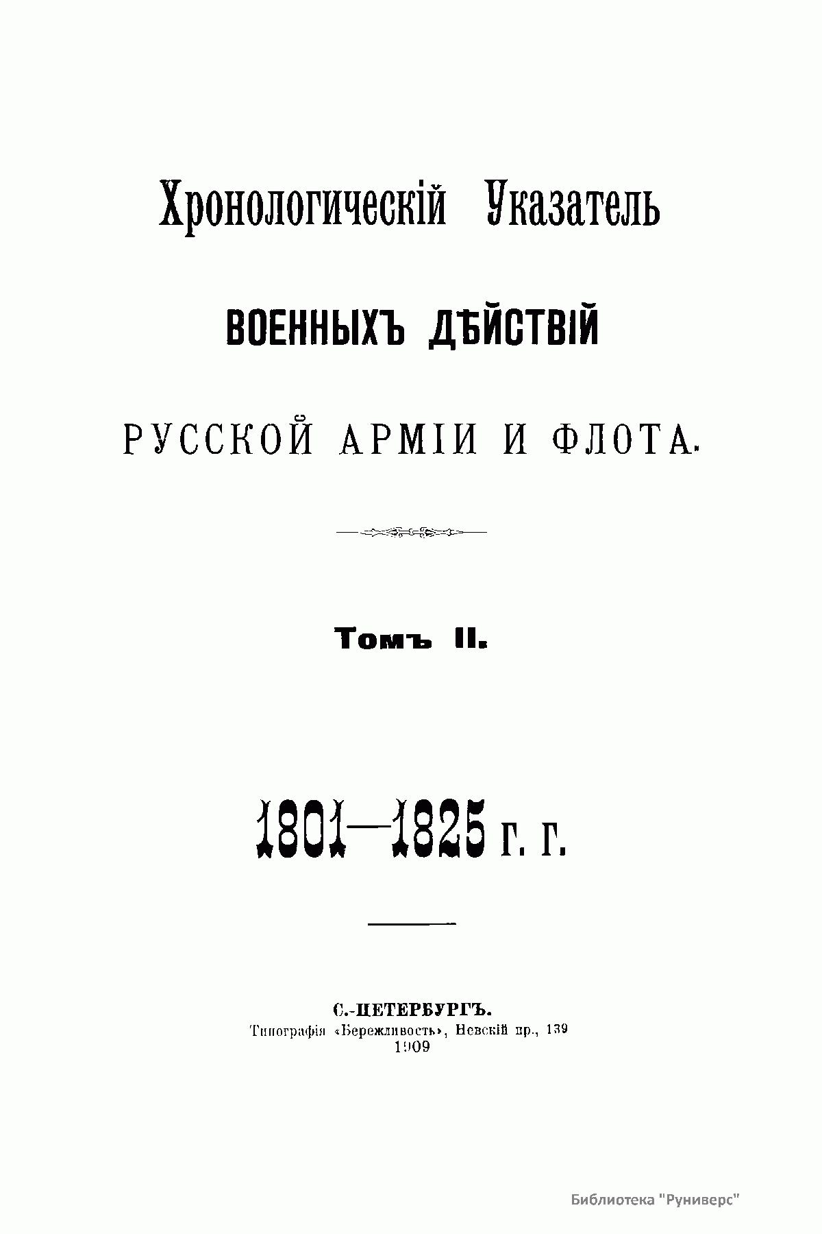 Хронологическiй Указатель военныхъ дѣйствiй русской армiи и флота. Томъ II. 1801-1825 г.г.