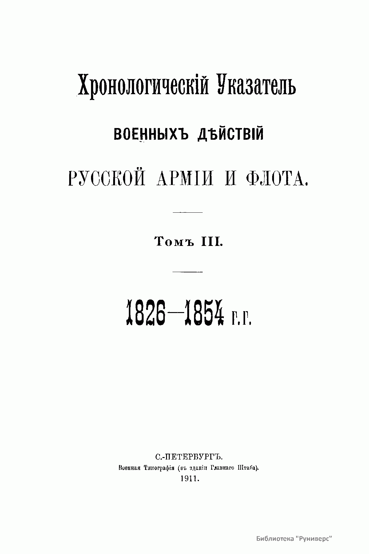 Хронологическiй Указатель военныхъ дѣйствiй русской армiи и флота. Томъ III. 1826-1854 г.г.