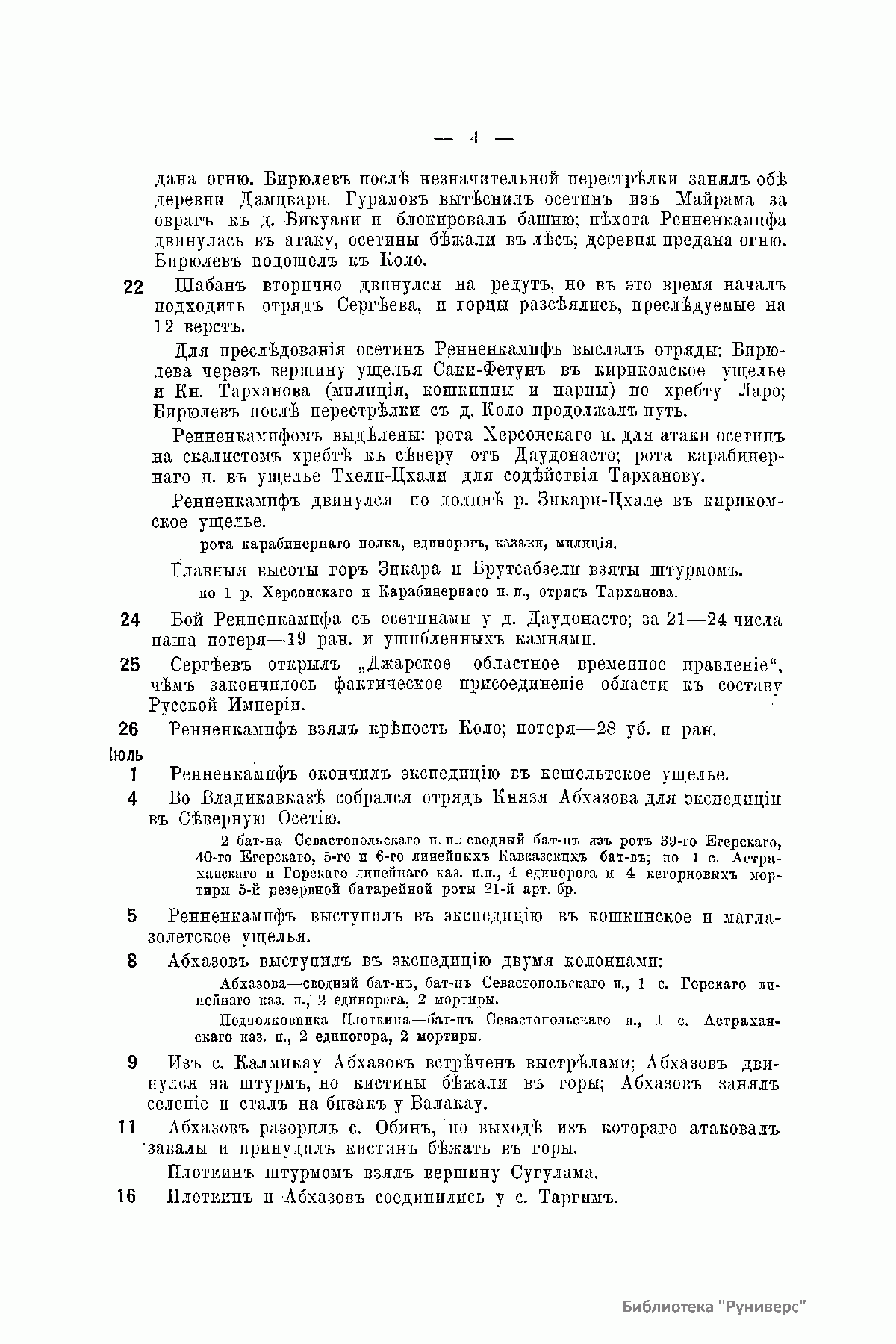 Подробный 5-томный справочник, изданный в 1908 – 1913 гг. коллективом авторов на основе фондов Военно-ученого архива Главного управления Генерального штаба (ныне Российский государственный военно-исторический архив), который содержит подробные сведения о боевых действиях русской армии и флота за период с 1695 г. (1-й Азовский поход) по 1905 г. (русско-японская война 1904 – 1905 гг.). В Справочнике приведены хронология событий, состав воинских соединений, включая наименования воинских подразделений (вплоть до отдельных рот и эскадронов), фамилии командиров, боевые потери и т.д.