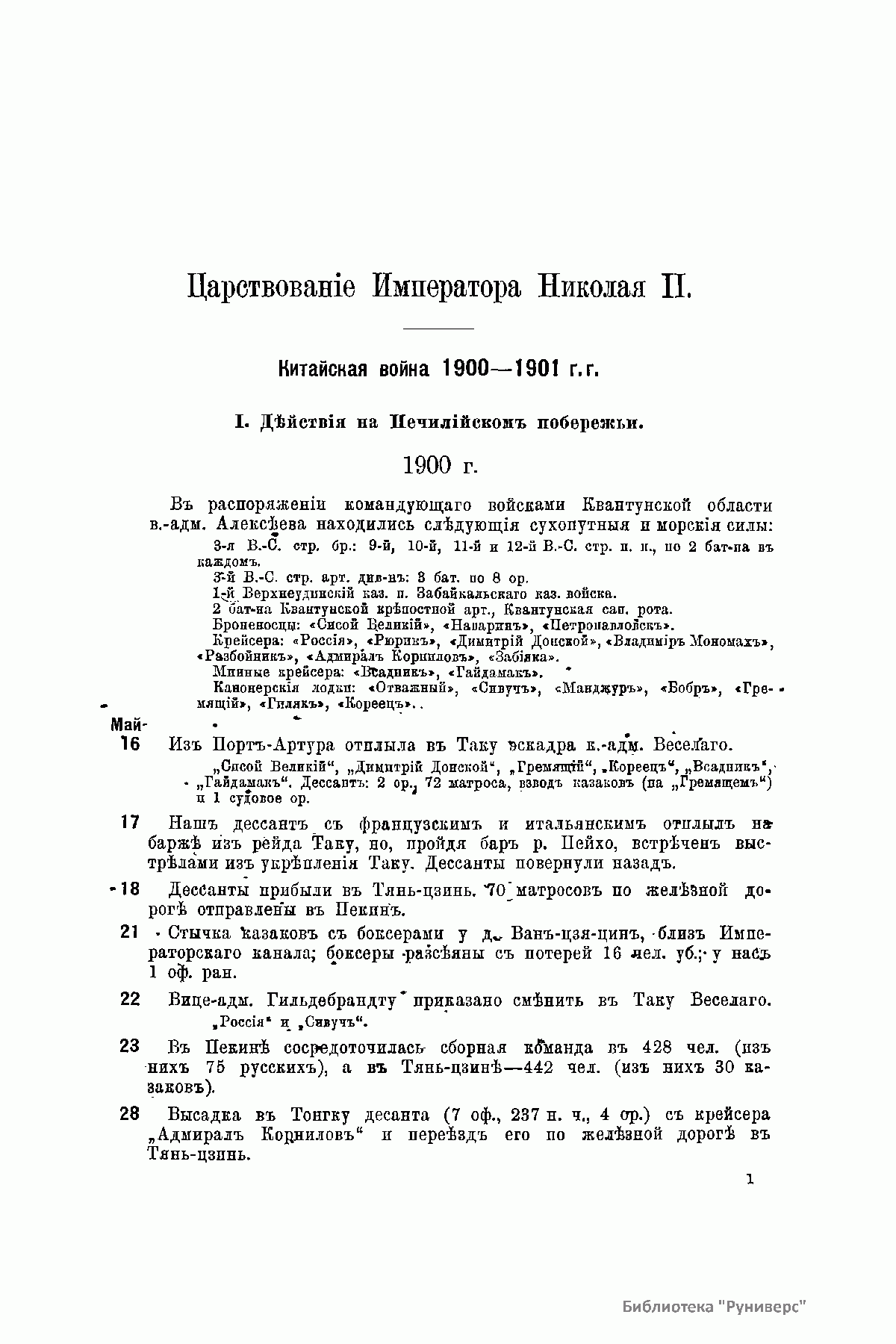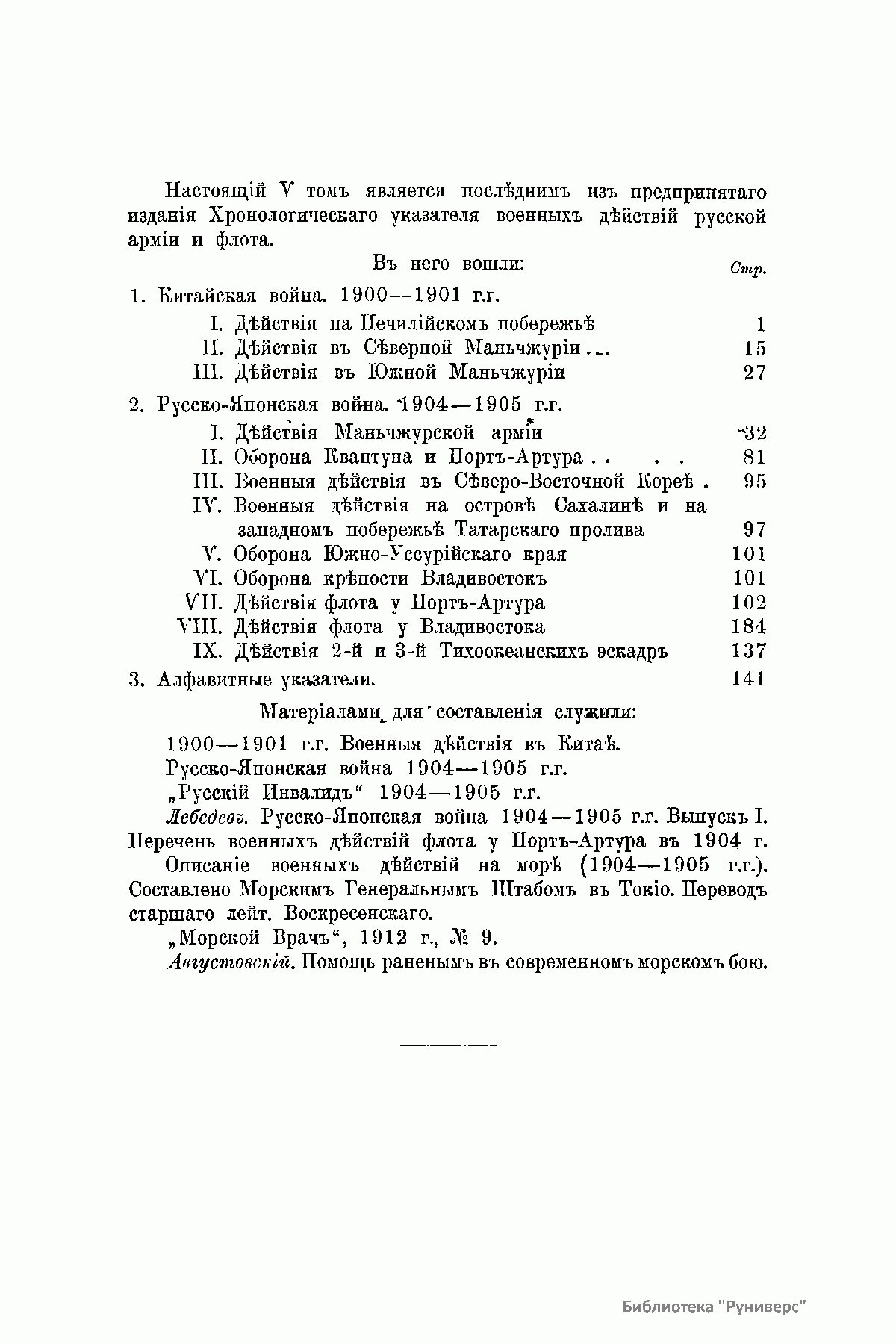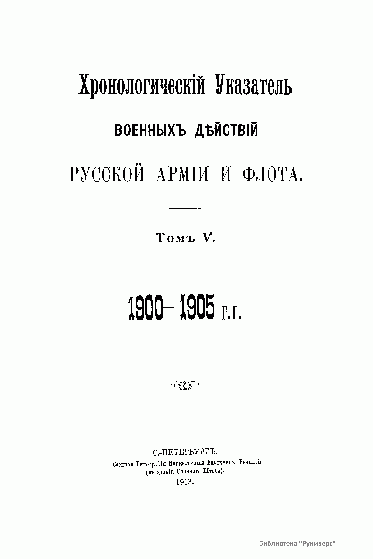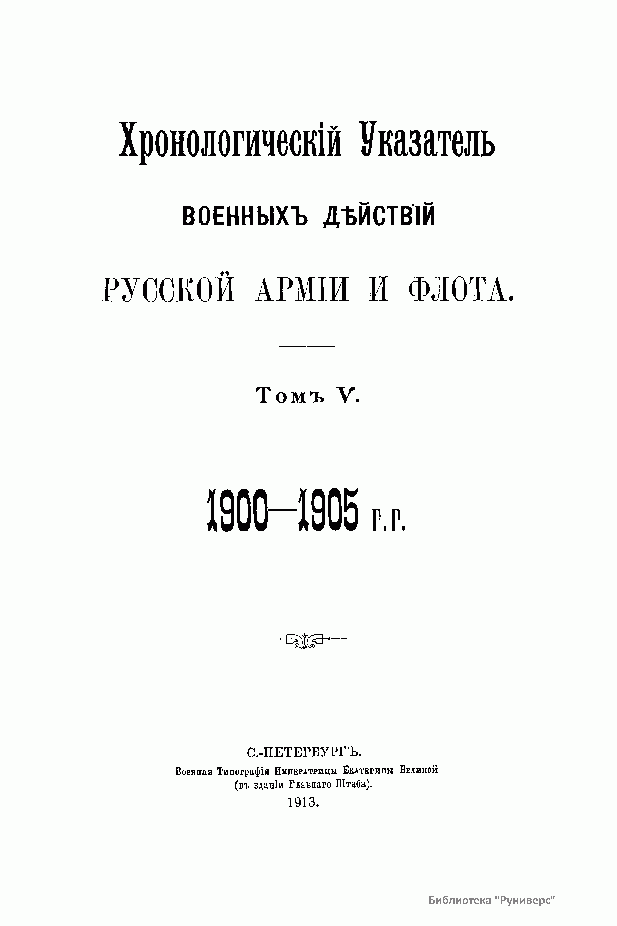 Хронологическiй Указатель военныхъ дѣйствiй русской армiи и флота. Томъ V. 1900-1905 г.г.