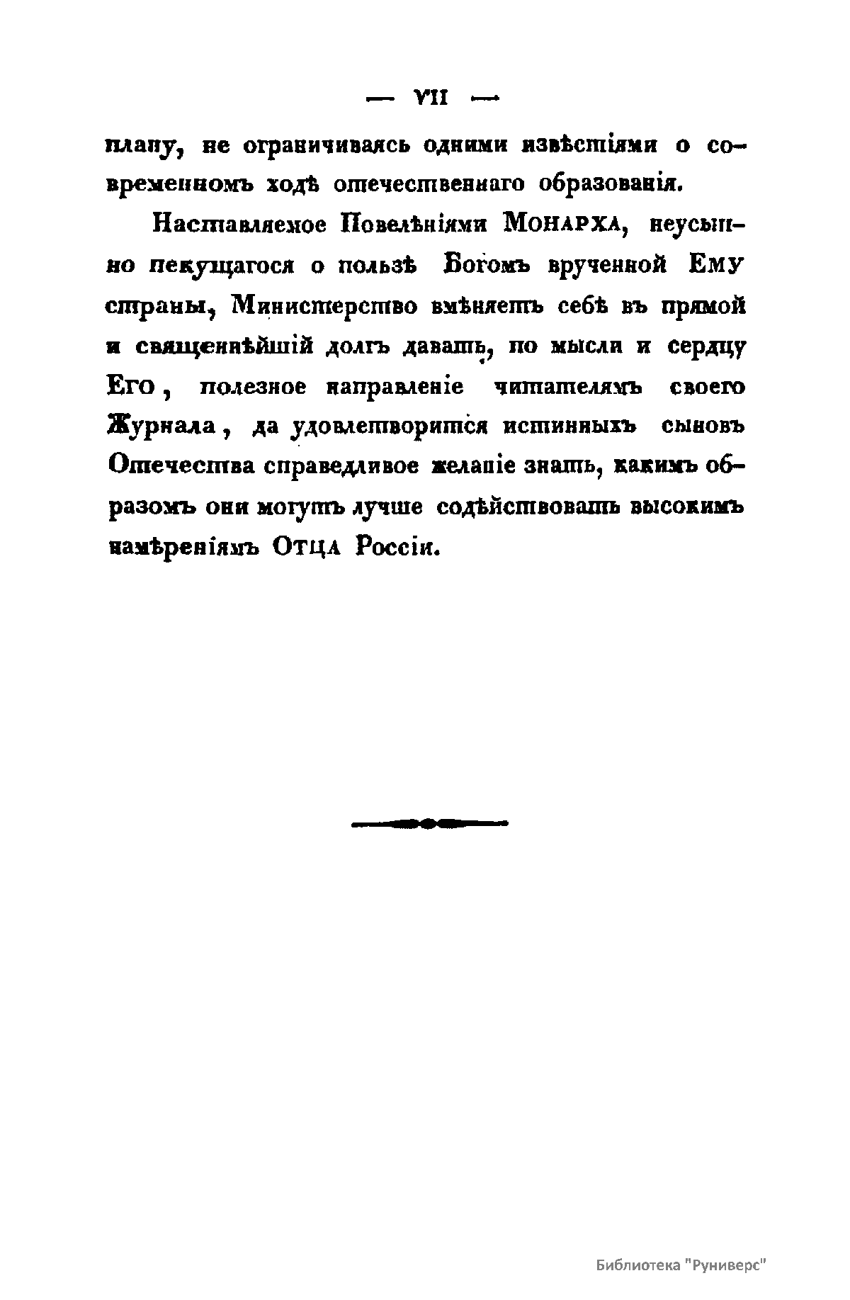 Журнал Министерства народного просвещения выходил с 1834-го по 1917 год. Официальный периодический журнал об успехах просвещения в России. Издатели журнала уверены в том, что «если для каждого человека необходим выход из грубой тьмы невежества и беспрерывное дальнейшее движение к свету, то для народов необходимо попечительное участие правительства в образовании. Только правительство имеет все средства знать и высоту успехов всемирного образования, и настоящие нужды Отечества».
