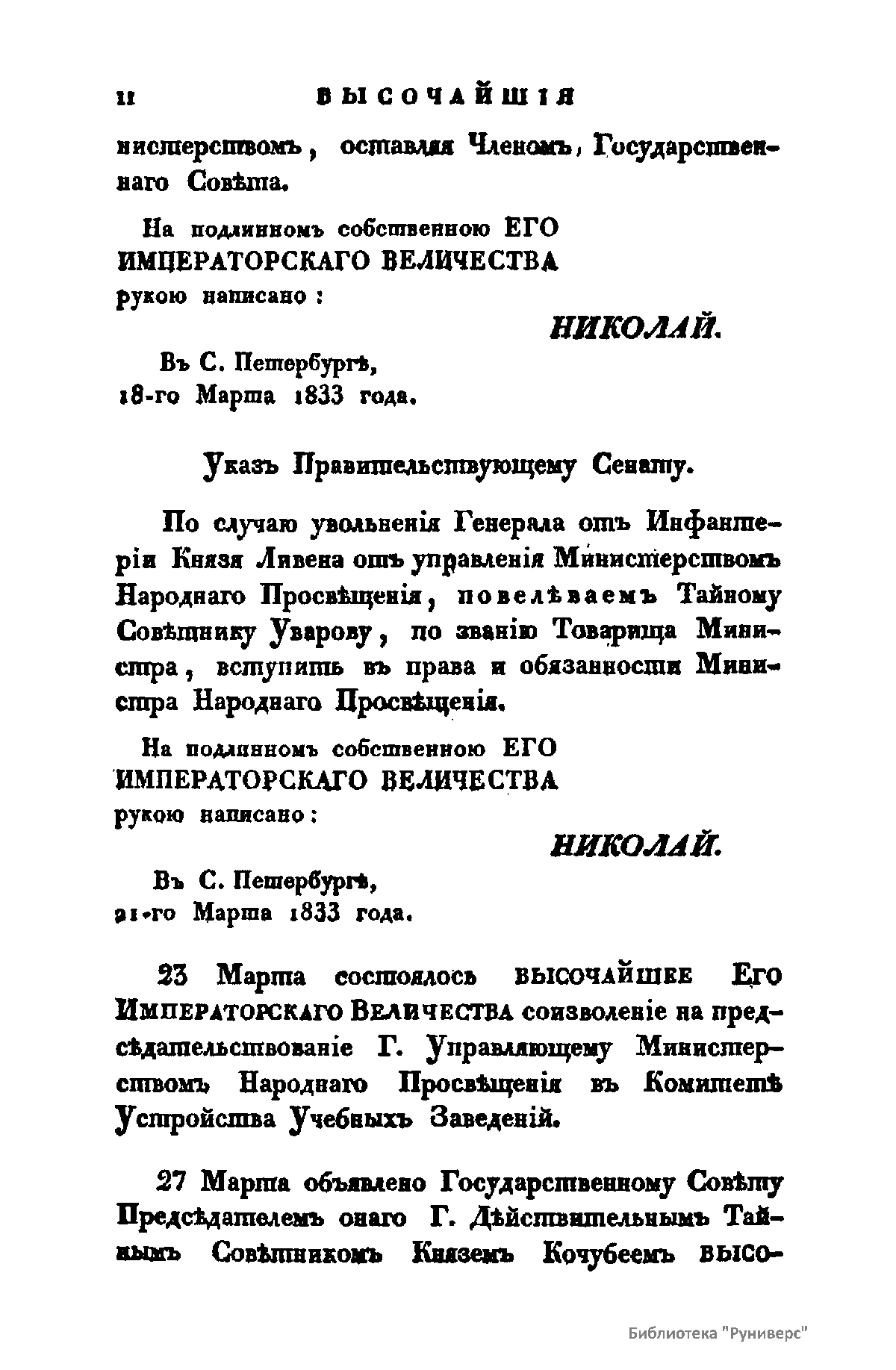 1. «Записки Департамента народного просвещения». Вышло в свет три книги этого издания – в 1825, 1827 и 1829-м годах.