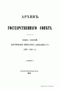 Архив Государственного совета. Том третий. Совет в царствование императора Александра I. 1801 - 1810 гг. Часть первая