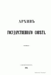 В 1863 г. по высочайшему повелению Александра II началась работа над систематическим описанием архива Государственного совета и Государственной канцелярии. Эта работа была поручена сенатору, историку-юристу Н. В. Калачову и советнику И. А. Чистовичу под высшим наблюдением председателя Государственного совета Д. Н. Блудова. Под их редактурой вышли в свет три тома (восемь книг) «Архива государственного совета»: две части первого тома, охватывающие период с 1768 по 1796 г. и заключающие в себе протоколы Совета, учрежденного императрицей Екатериной II; две части четвертого тома, содержащие журналы Государственного совета по Департаменту законов с 1810 по 1825 г.; две части третьего тома, в которые вошли протоколы Совета при Высочайшем дворе с 1801 по 1810 г.; две части четвертого тома, включающие журналы Государственного совета по Департаменту экономии с 1810 по 1825 г. Со смертью главного редактора издания сенатора Калачова публикация архива была приостановлена. С учетом исторической ценности данного труда, в 1886 г. последовало высочайшее повеление продолжить работу над изданием. Его составление и редактирование было возложено на члена Археографической комиссии Министерства народного просвещения Г. Ф. Штендмана, помощника статс-секретаря Государственного совета П. М. фон Кауфмана и др. В продолжение работы над изданием были опубликованы: третья часть четвертого тома, содержащая материалы по гражданскому отделению Департамента законов (1818–1820); пять частей четвертого тома, в который вошли журналы по Департаменту гражданских и духовных дел (1810 – 19 ноября 1825 г.); первая часть пятого тома, включающая журналы по делам Департамента государственной экономии (20 ноября 1825 г. – 1826).