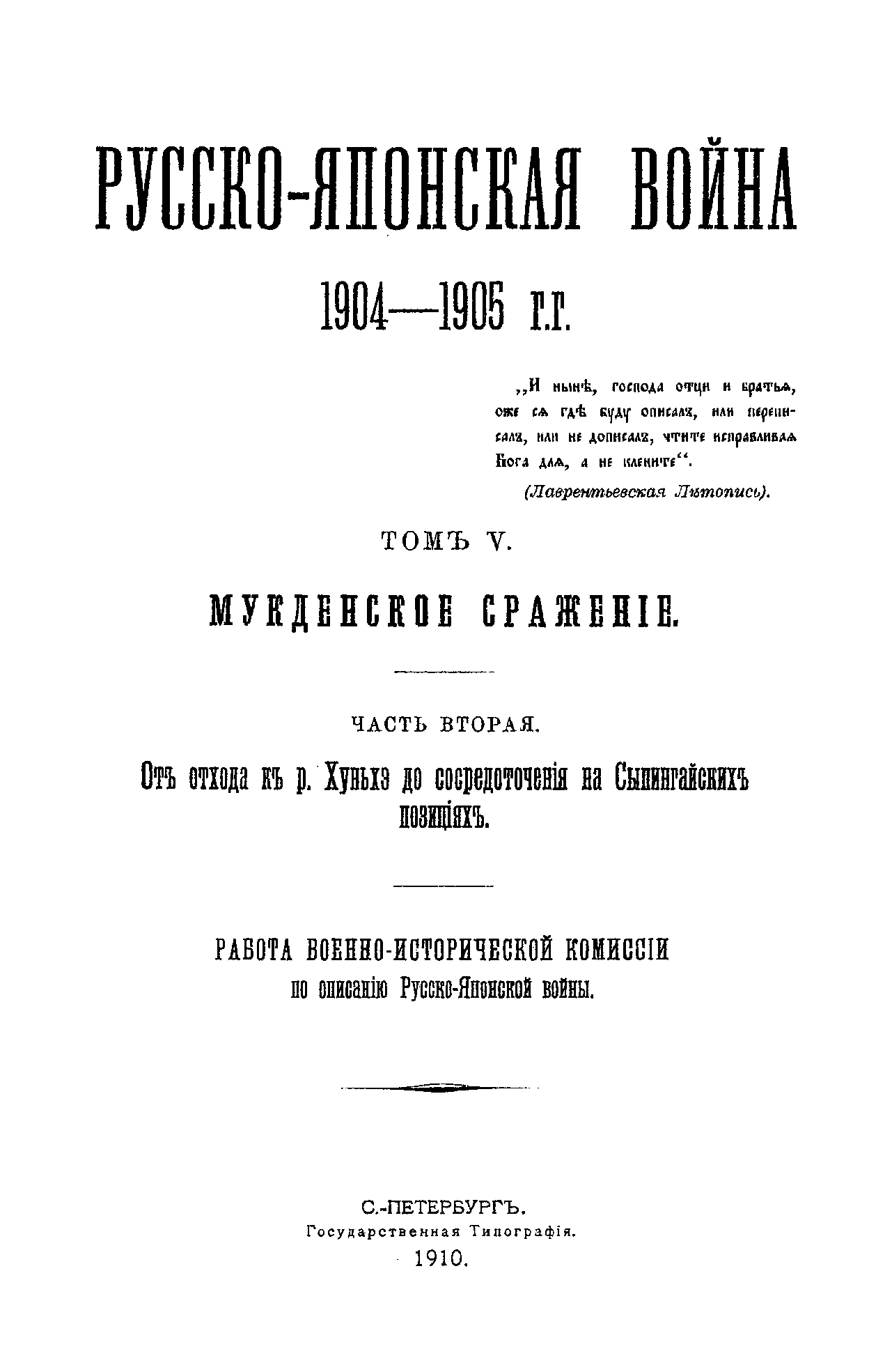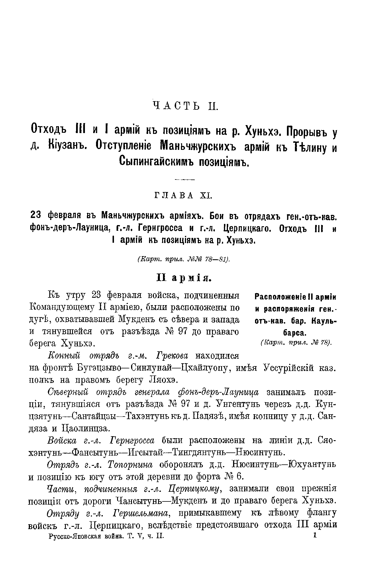 Русско-Японская война 1904-1905 гг. Томъ V. Мукденское сраженiе. Часть вторая. Отъ отхода къ р. Хуньхэ до сосредоточенiя на Сыпингайскихъ позицiяхъ