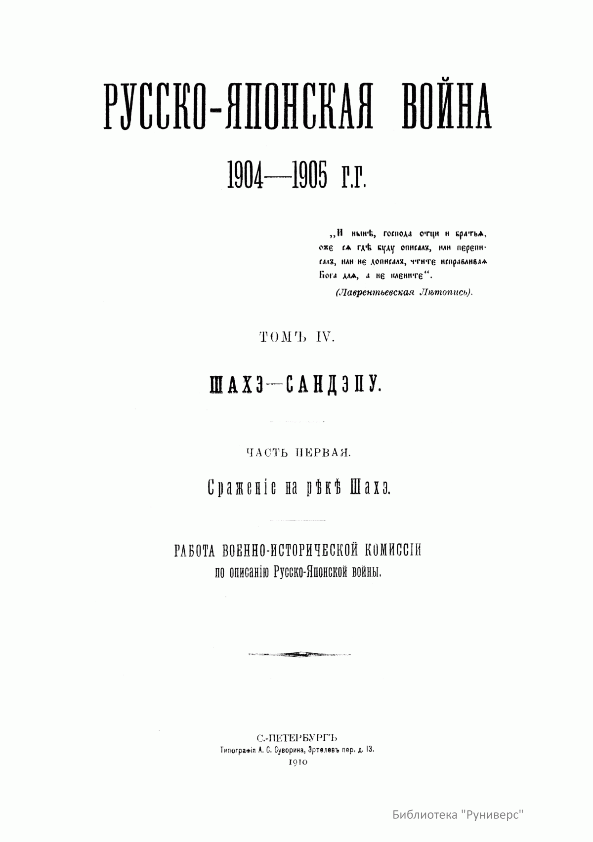 К началу 1910 г. работа была закончена, и в течение года была издана «Русско-японская война