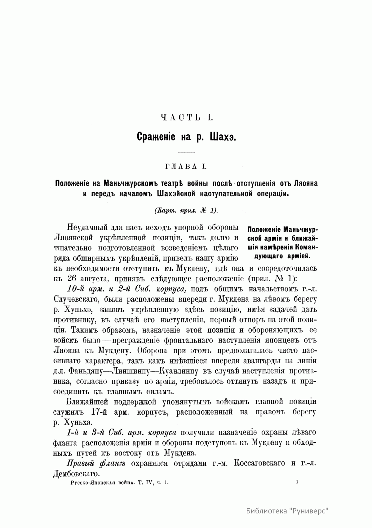 Русско-Японская война 1904-1905 гг. Том IV. Шахэ - Сандэпу. Часть первая. Сражение на реке Шахэ