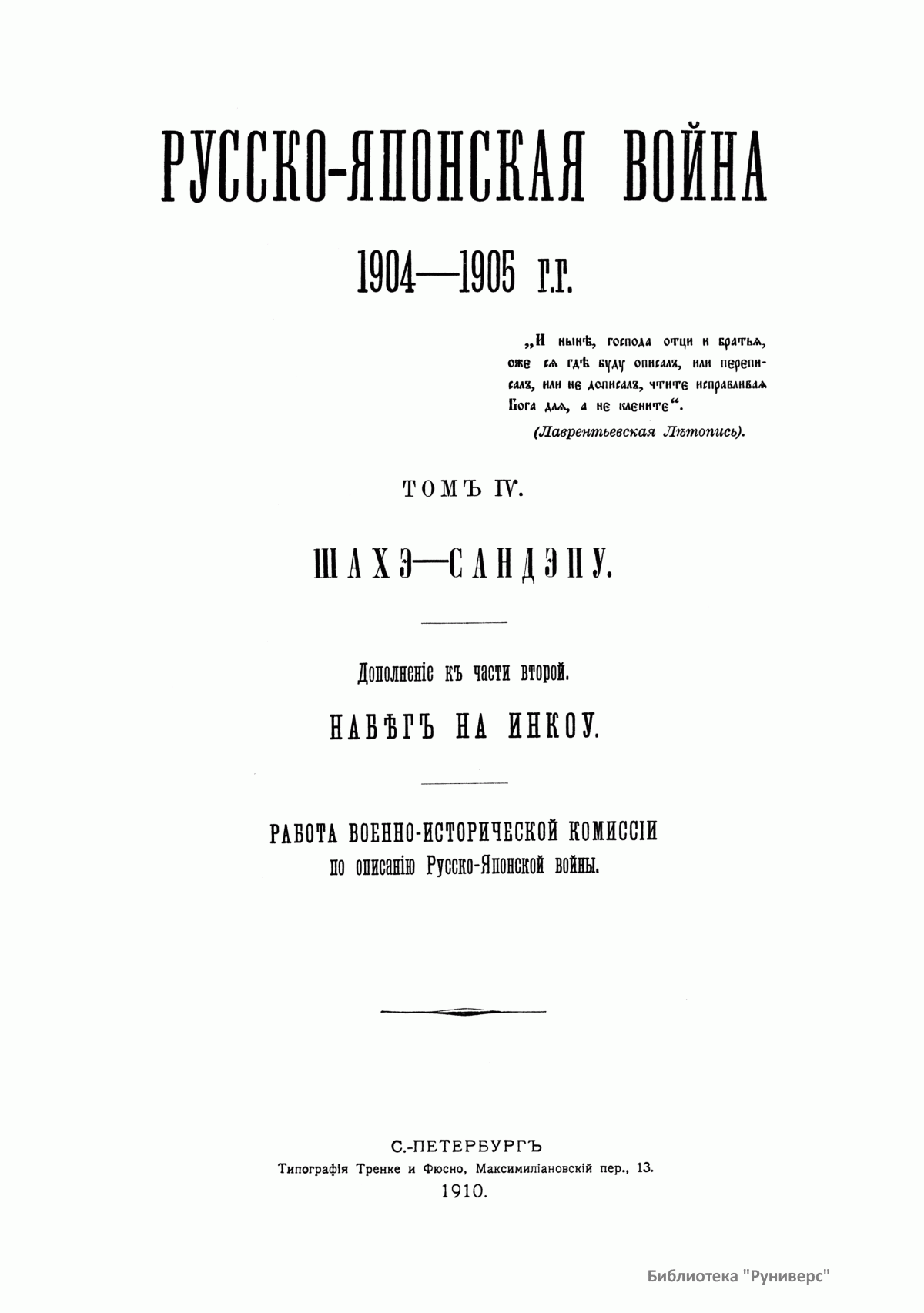 К началу 1910 г. работа была закончена, и в течение года была издана «Русско-японская война