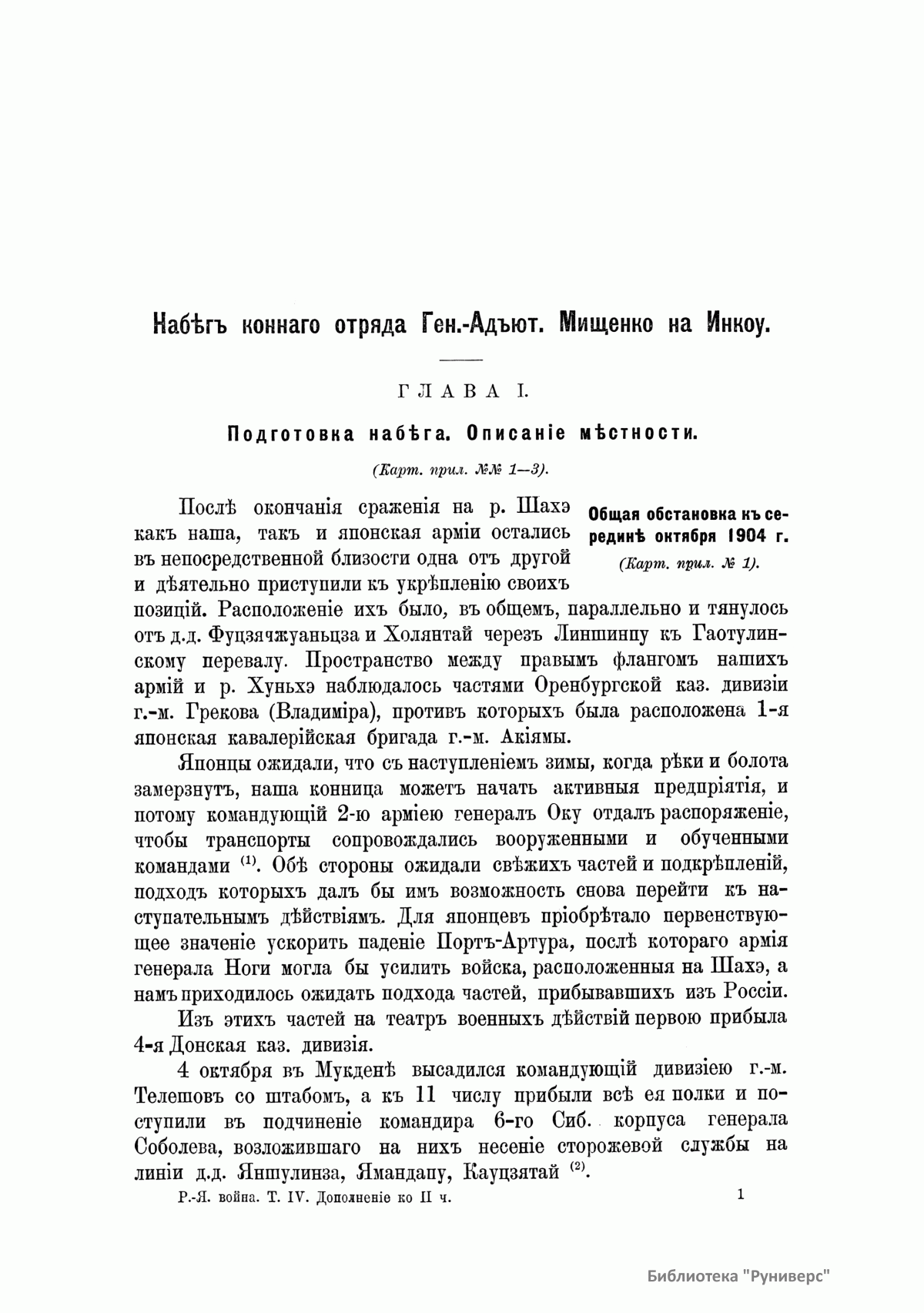 Русско-Японская война 1904-1905 гг. Том IV. Шахэ - Сандэпу. Дополнение к части второй. Набег на Инкоу