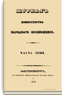 Журнал Министерства народного просвещения выходил с 1834-го по 1917 год. Официальный периодический журнал об успехах просвещения в России. Издатели журнала уверены в том, что «если для каждого человека необходим выход из грубой тьмы невежества и беспрерывное дальнейшее движение к свету, то для народов необходимо попечительное участие правительства в образовании. Только правительство имеет все средства знать и высоту успехов всемирного образования, и настоящие нужды Отечества».