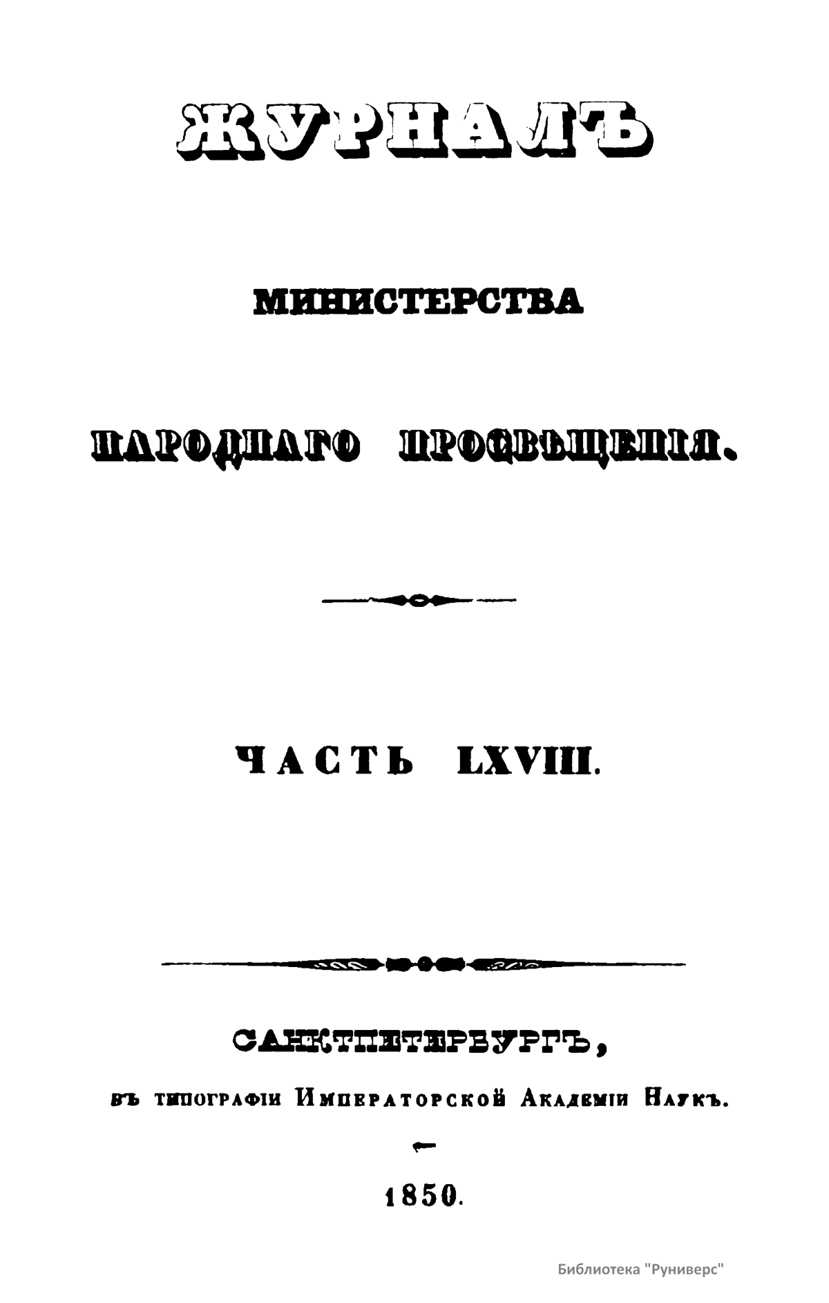 Журнал Министерства народного просвещения. Часть LXVIII
