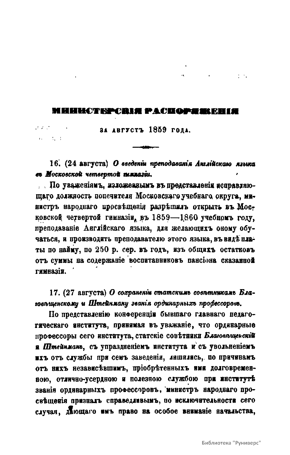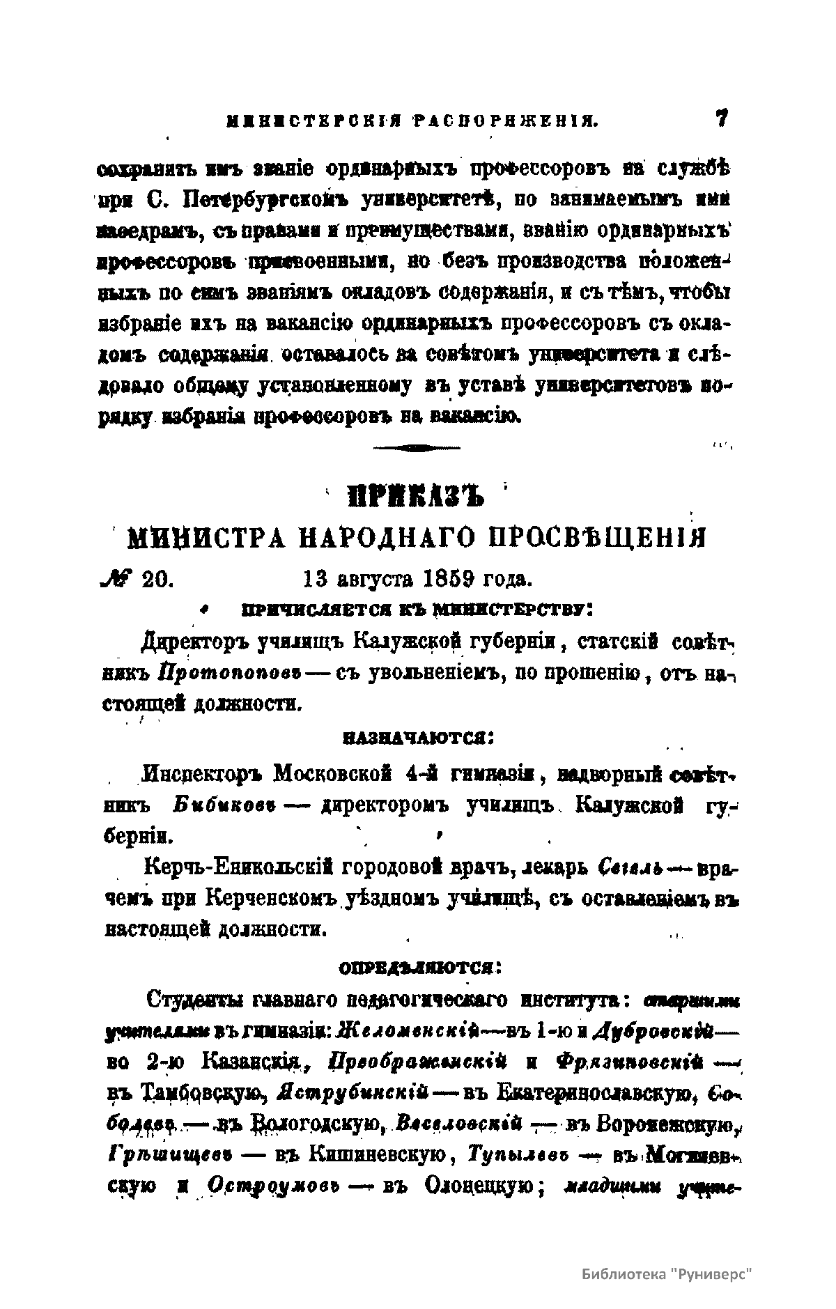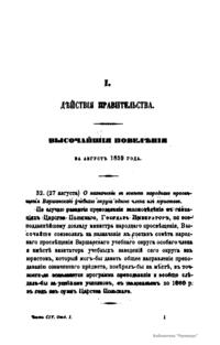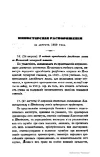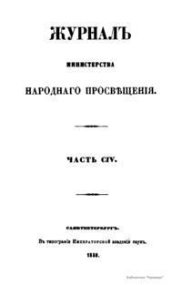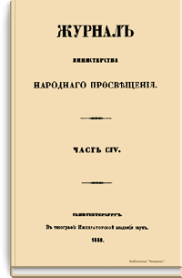 Журнал Министерства народного просвещения выходил с 1834-го по 1917 год. Официальный периодический журнал об успехах просвещения в России. Издатели журнала уверены в том, что «если для каждого человека необходим выход из грубой тьмы невежества и беспрерывное дальнейшее движение к свету, то для народов необходимо попечительное участие правительства в образовании. Только правительство имеет все средства знать и высоту успехов всемирного образования, и настоящие нужды Отечества».