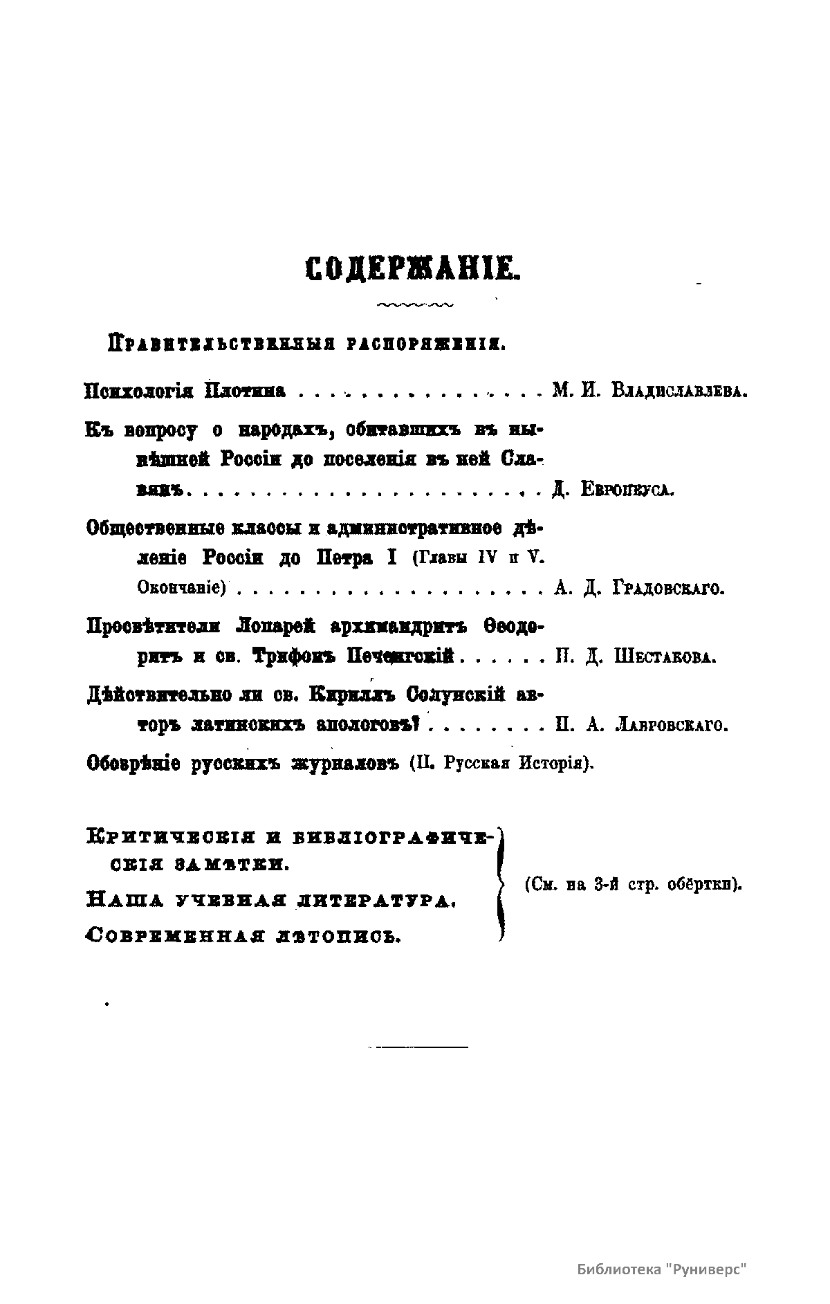Журнал широкого профиля (гуманитарные науки), но в нем печатались философские статьи, имеется много официального материала, ценного для понимания истории философии в России.