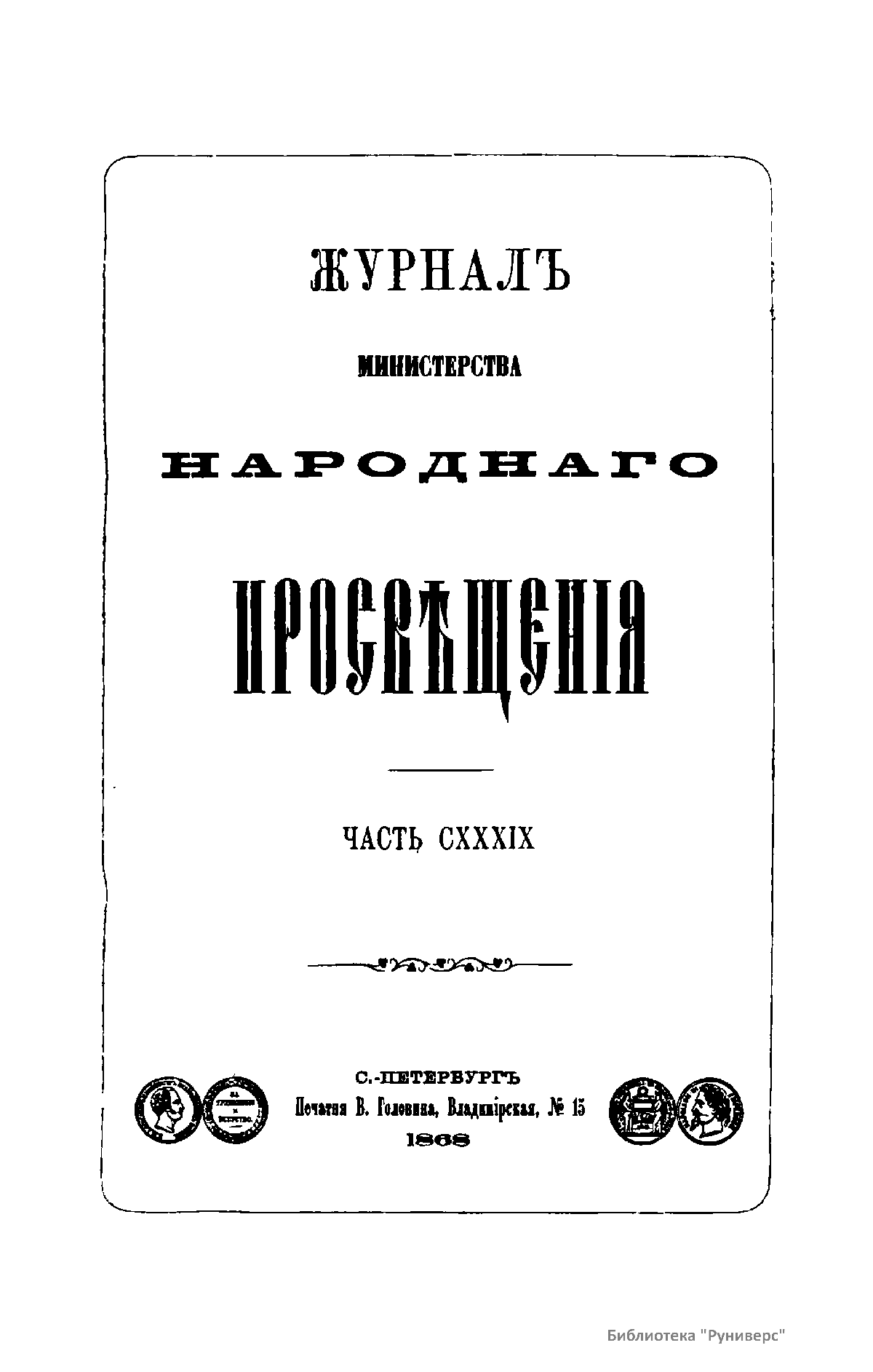 Журнал Министерства народного просвещения. Часть CXXXIX