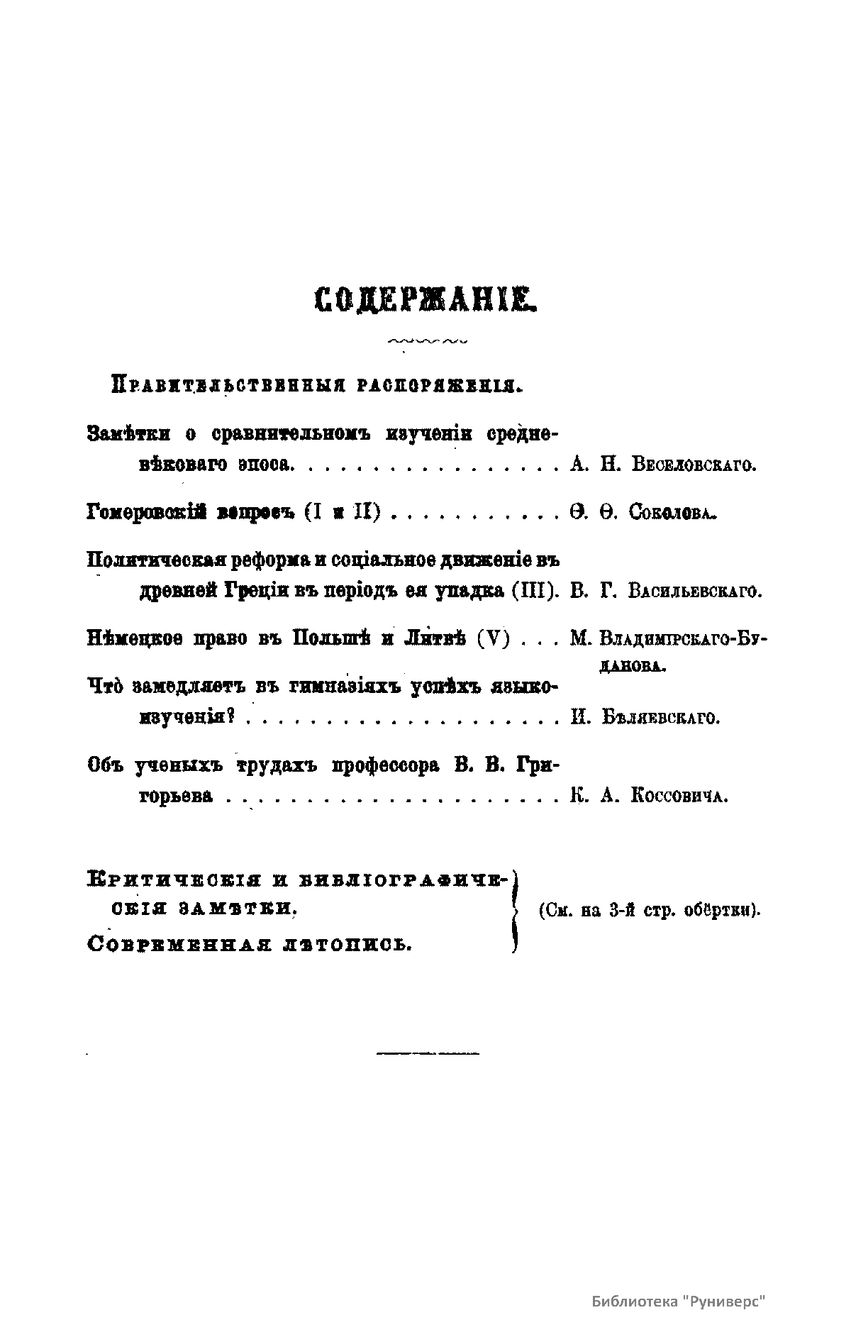 Журнал широкого профиля (гуманитарные науки), но в нем печатались философские статьи, имеется много официального материала, ценного для понимания истории философии в России.
