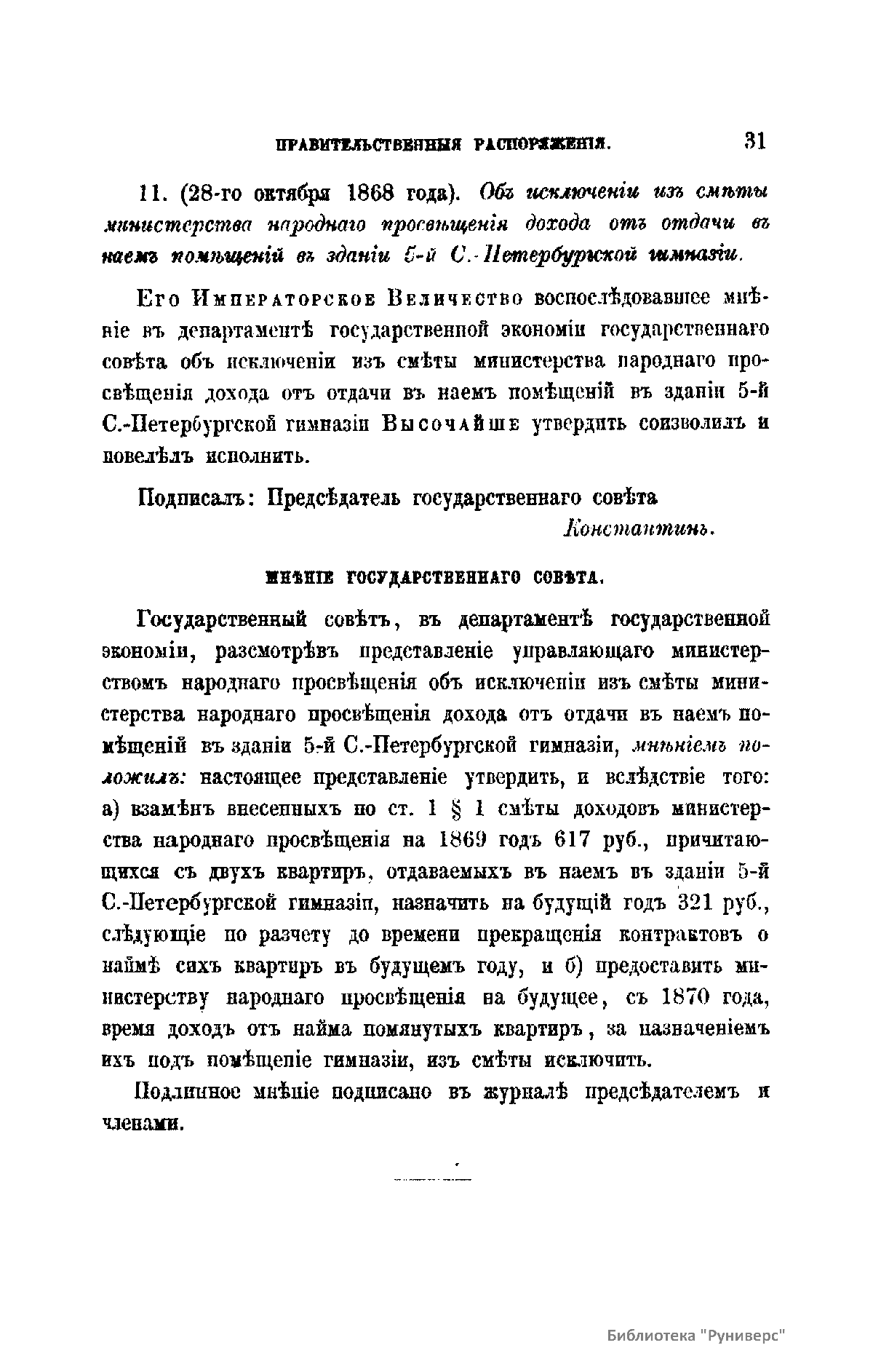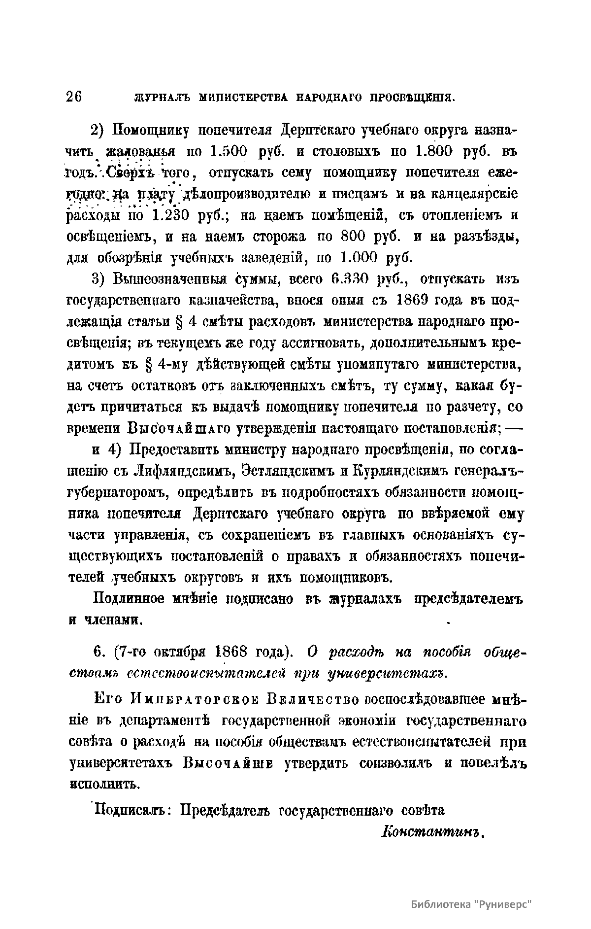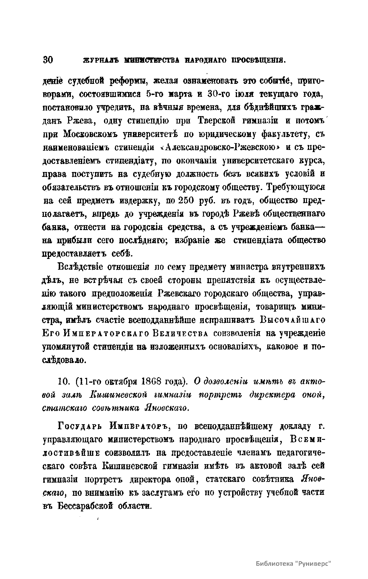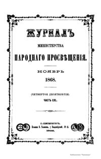 Журнал Министерства народного просвещения выходил с 1834-го по 1917 год. Официальный периодический журнал об успехах просвещения в России. Издатели журнала уверены в том, что «если для каждого человека необходим выход из грубой тьмы невежества и беспрерывное дальнейшее движение к свету, то для народов необходимо попечительное участие правительства в образовании. Только правительство имеет все средства знать и высоту успехов всемирного образования, и настоящие нужды Отечества».