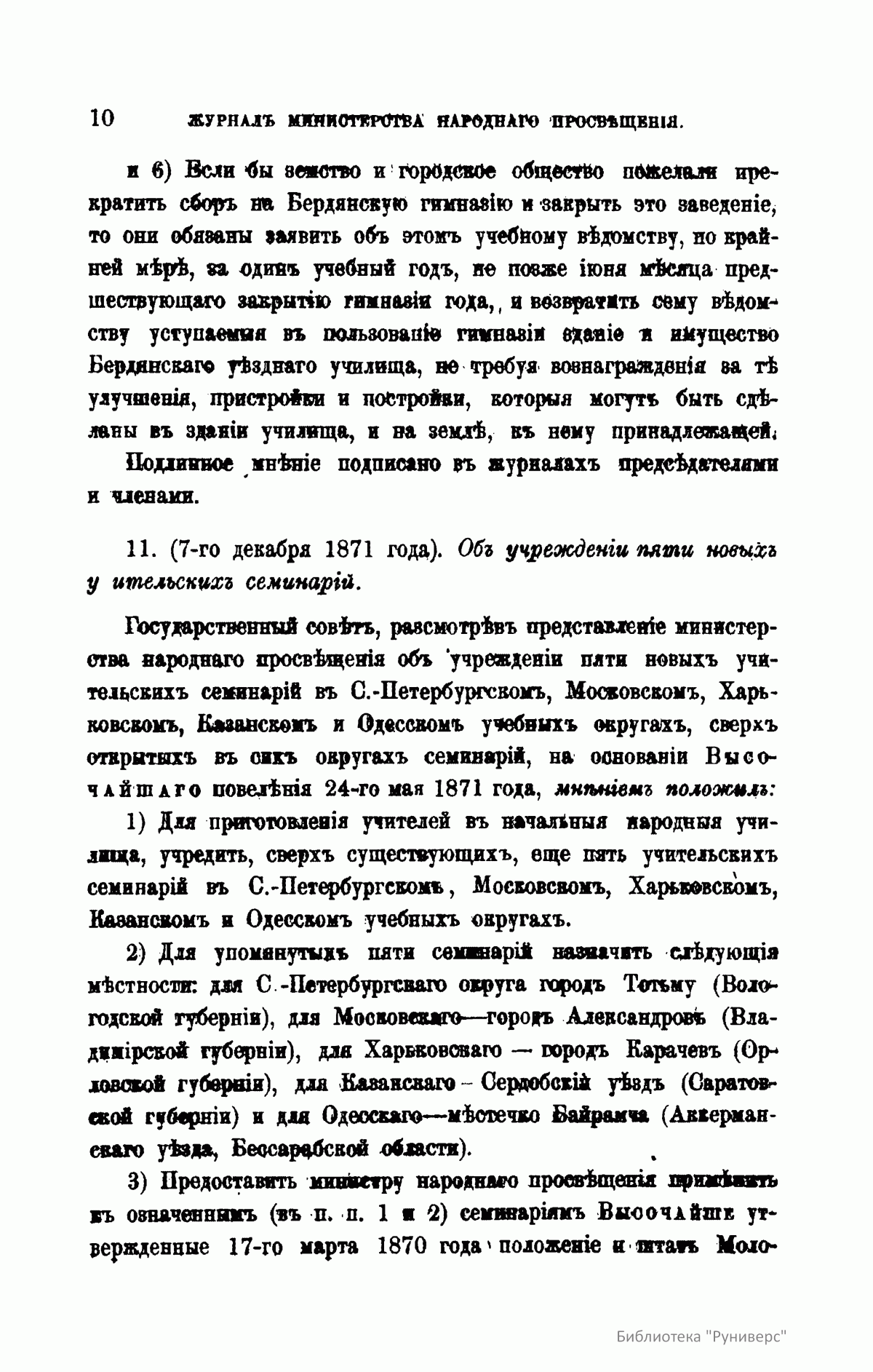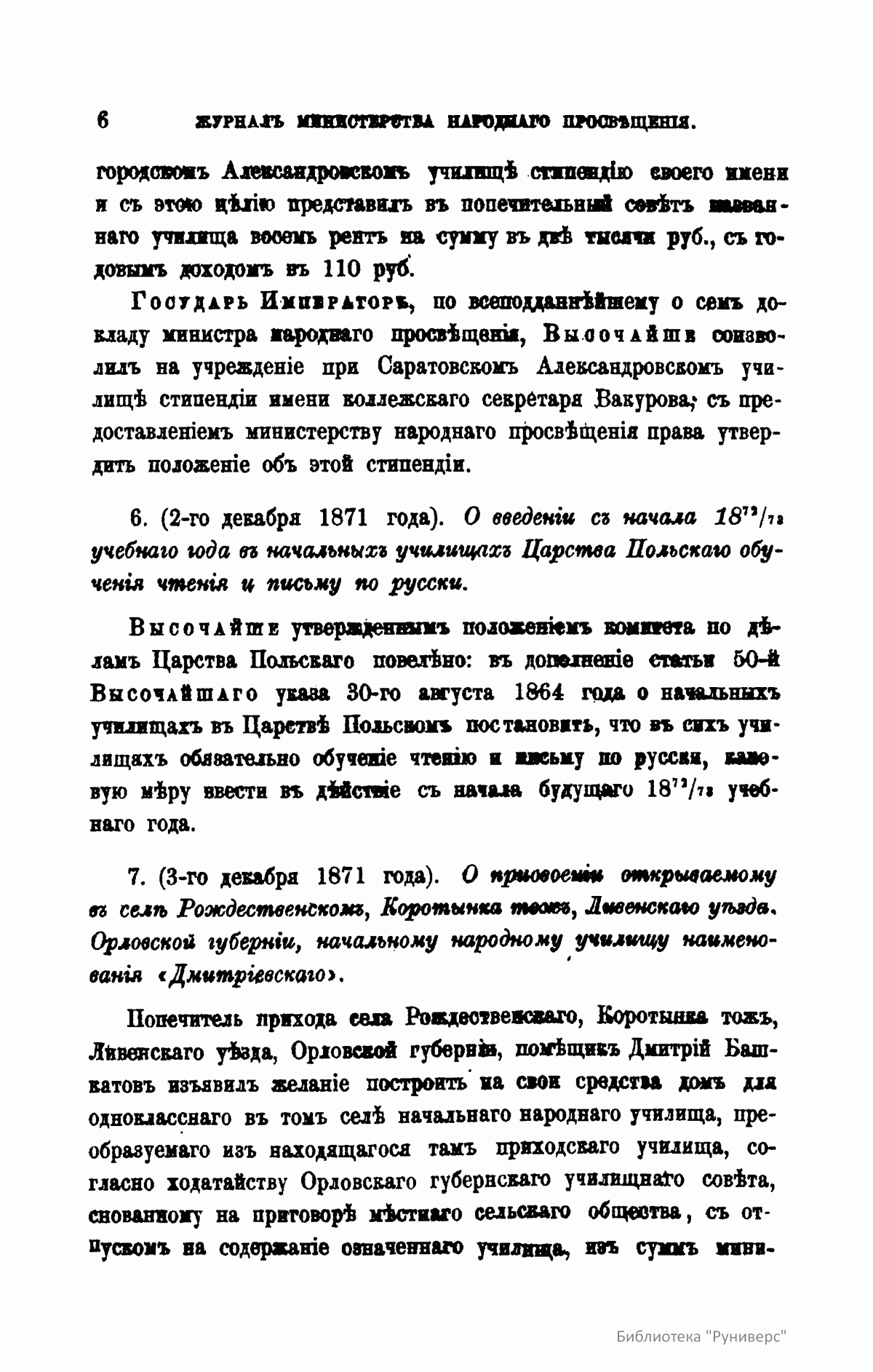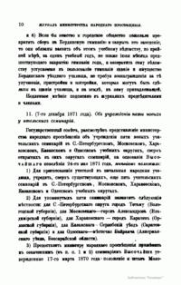 Журнал Министерства народного просвещения выходил с 1834-го по 1917 год. Официальный периодический журнал об успехах просвещения в России. Издатели журнала уверены в том, что «если для каждого человека необходим выход из грубой тьмы невежества и беспрерывное дальнейшее движение к свету, то для народов необходимо попечительное участие правительства в образовании. Только правительство имеет все средства знать и высоту успехов всемирного образования, и настоящие нужды Отечества».