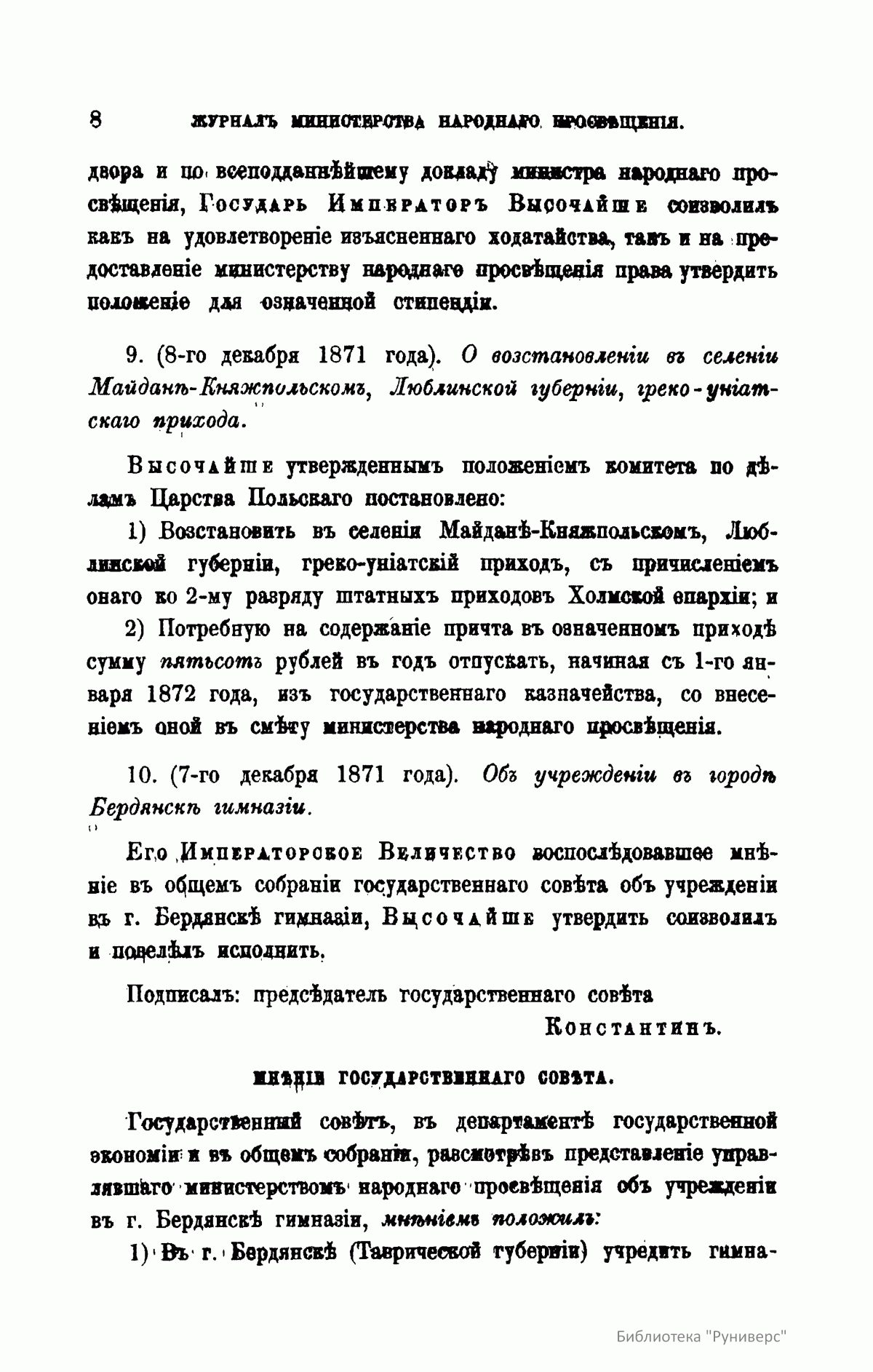 1. «Записки Департамента народного просвещения». Вышло в свет три книги этого издания – в 1825, 1827 и 1829-м годах.