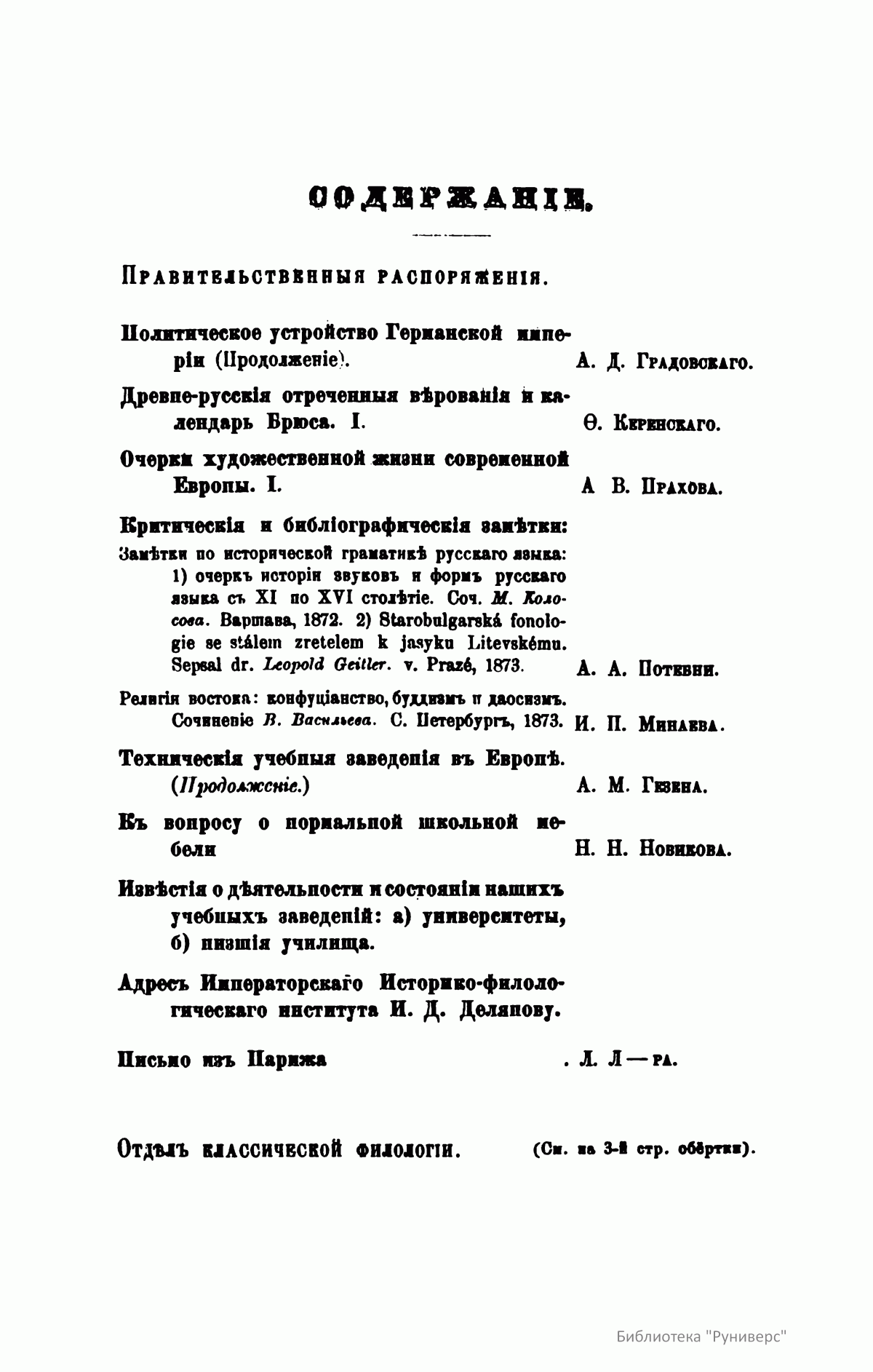 С 1864 года стали выходить указатели к повременным изданиям Министерства народного просвещения начиная с 1803 года.