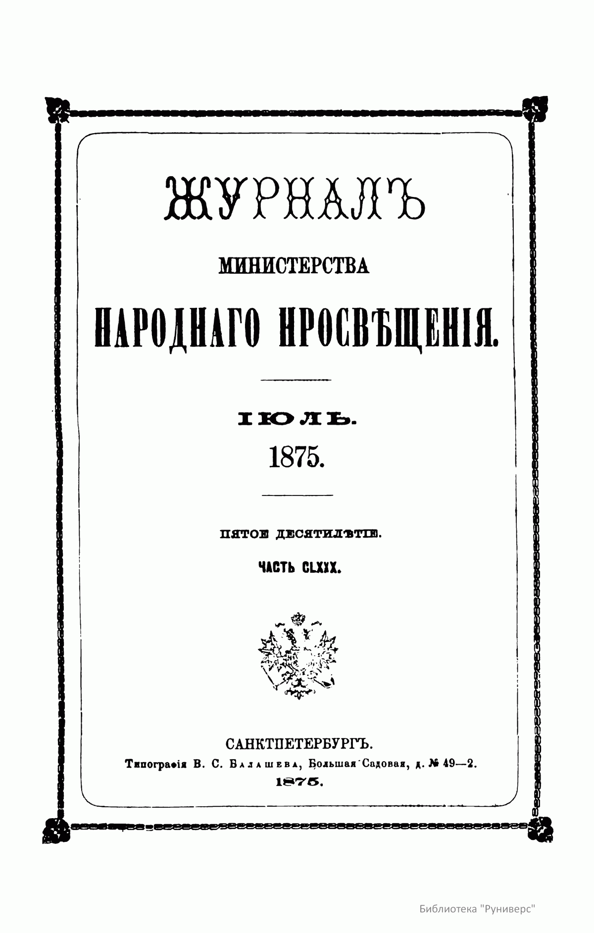 Журналъ Министерства народнаго просвѣщения. Часть CLXXX