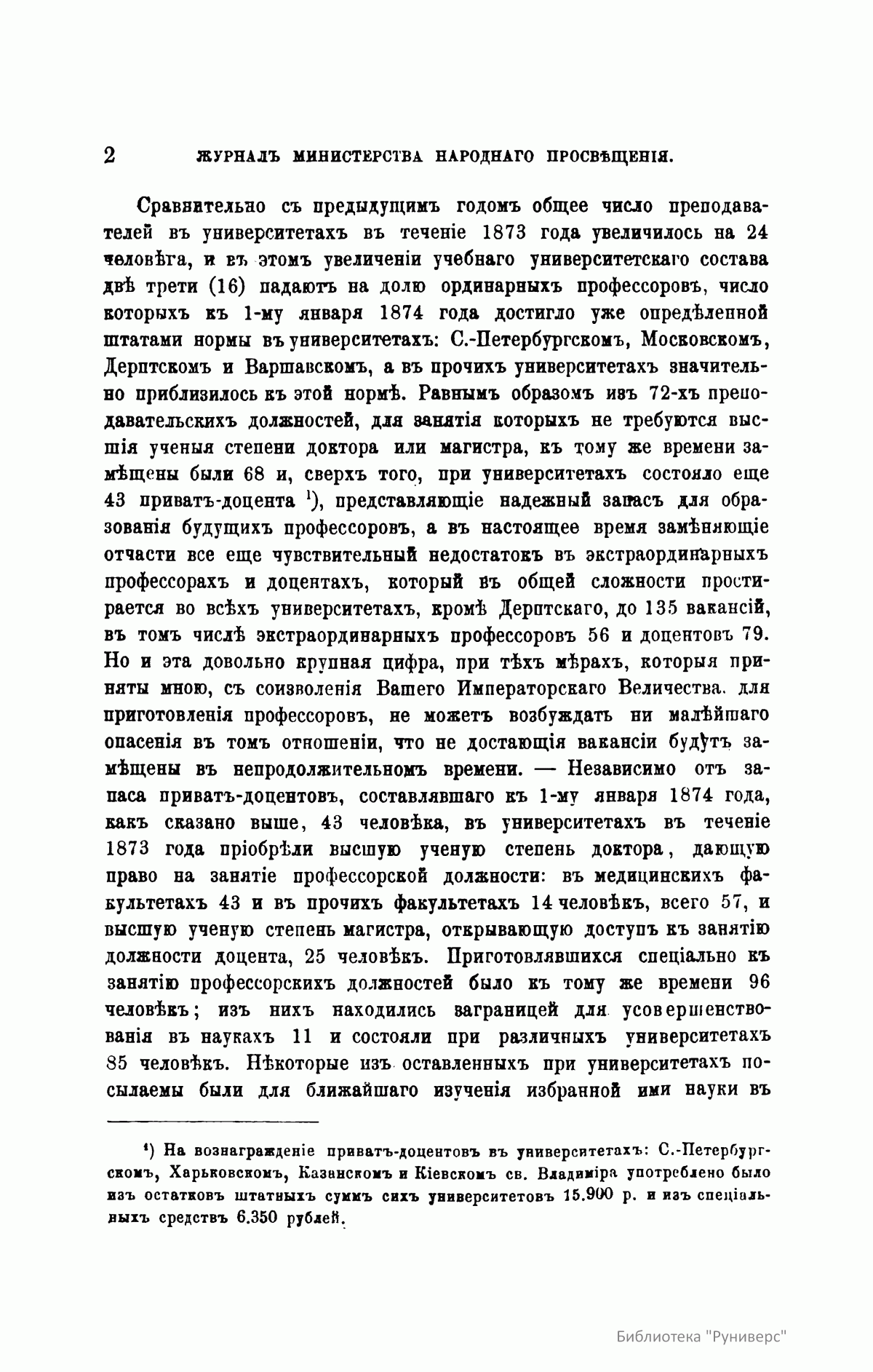 Журнал Министерства народного просвещения выходил с 1834-го по 1917 год. Официальный периодический журнал об успехах просвещения в России. Издатели журнала уверены в том, что «если для каждого человека необходим выход из грубой тьмы невежества и беспрерывное дальнейшее движение к свету, то для народов необходимо попечительное участие правительства в образовании. Только правительство имеет все средства знать и высоту успехов всемирного образования, и настоящие нужды Отечества».