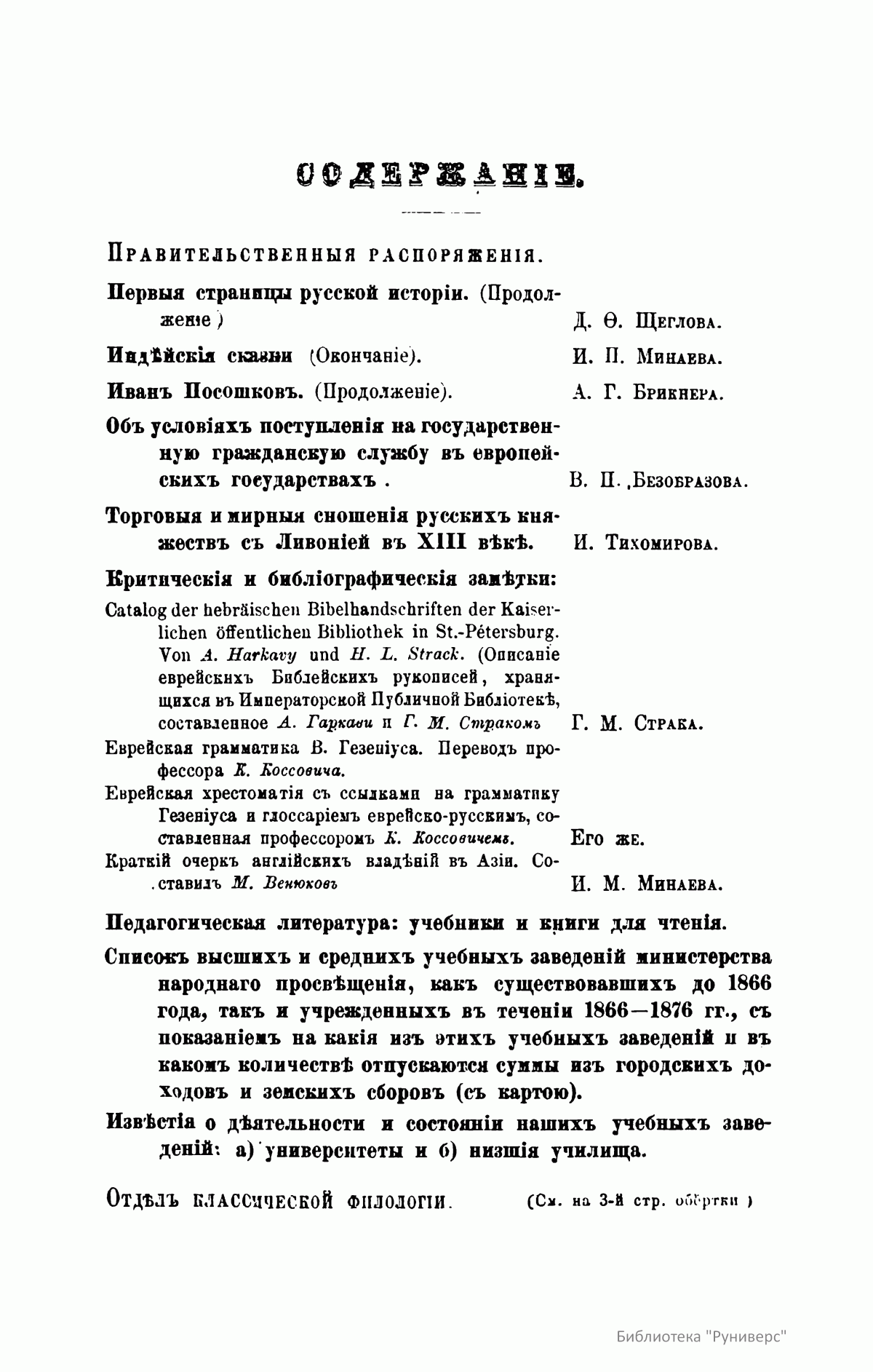С 1864 года стали выходить указатели к повременным изданиям Министерства народного просвещения начиная с 1803 года.