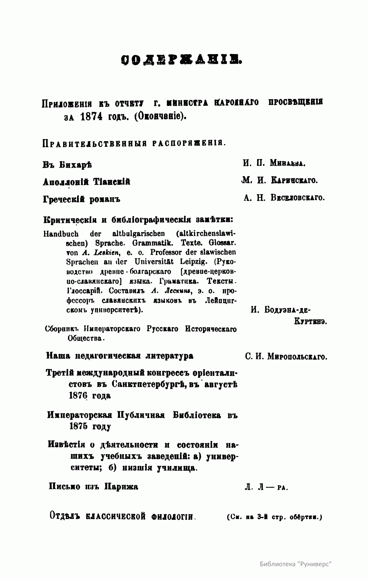 С 1864 года стали выходить указатели к повременным изданиям Министерства народного просвещения начиная с 1803 года.