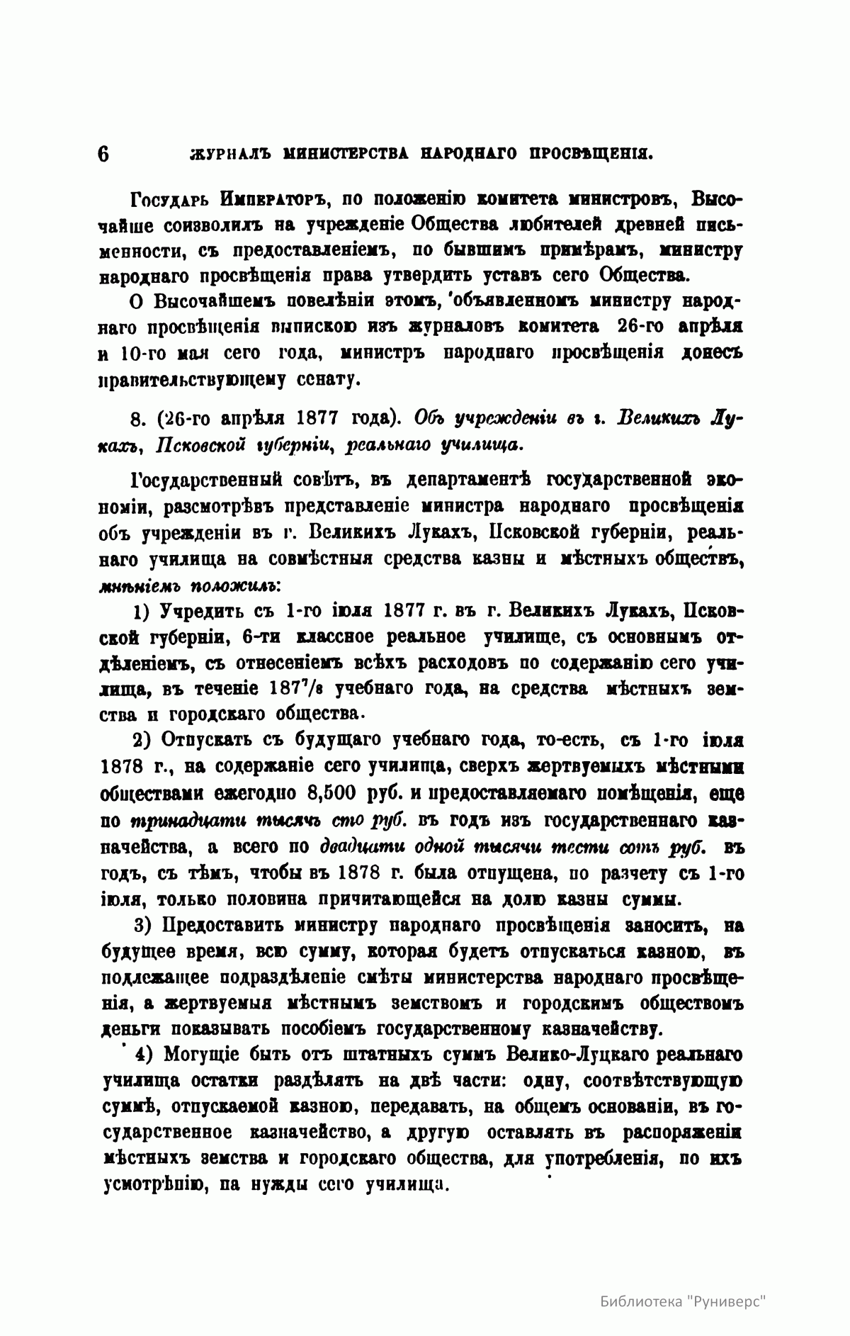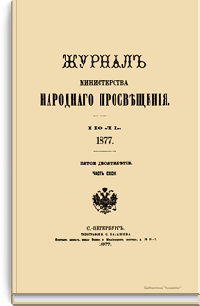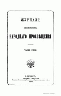 Журнал Министерства народного просвещения выходил с 1834-го по 1917 год. Официальный периодический журнал об успехах просвещения в России. Издатели журнала уверены в том, что «если для каждого человека необходим выход из грубой тьмы невежества и беспрерывное дальнейшее движение к свету, то для народов необходимо попечительное участие правительства в образовании. Только правительство имеет все средства знать и высоту успехов всемирного образования, и настоящие нужды Отечества».