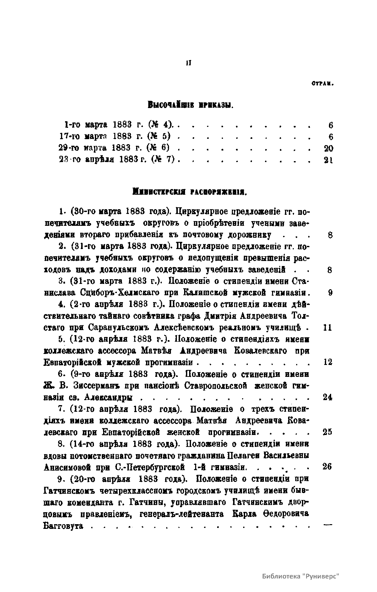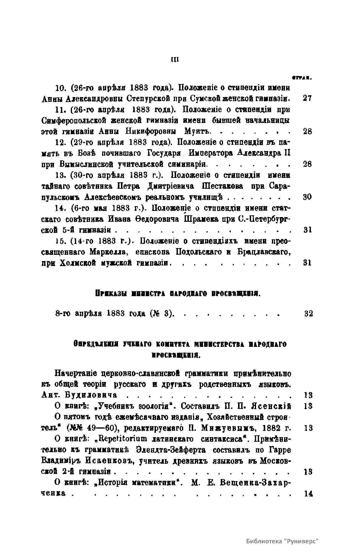 С 1864 года стали выходить указатели к повременным изданиям Министерства народного просвещения начиная с 1803 года.