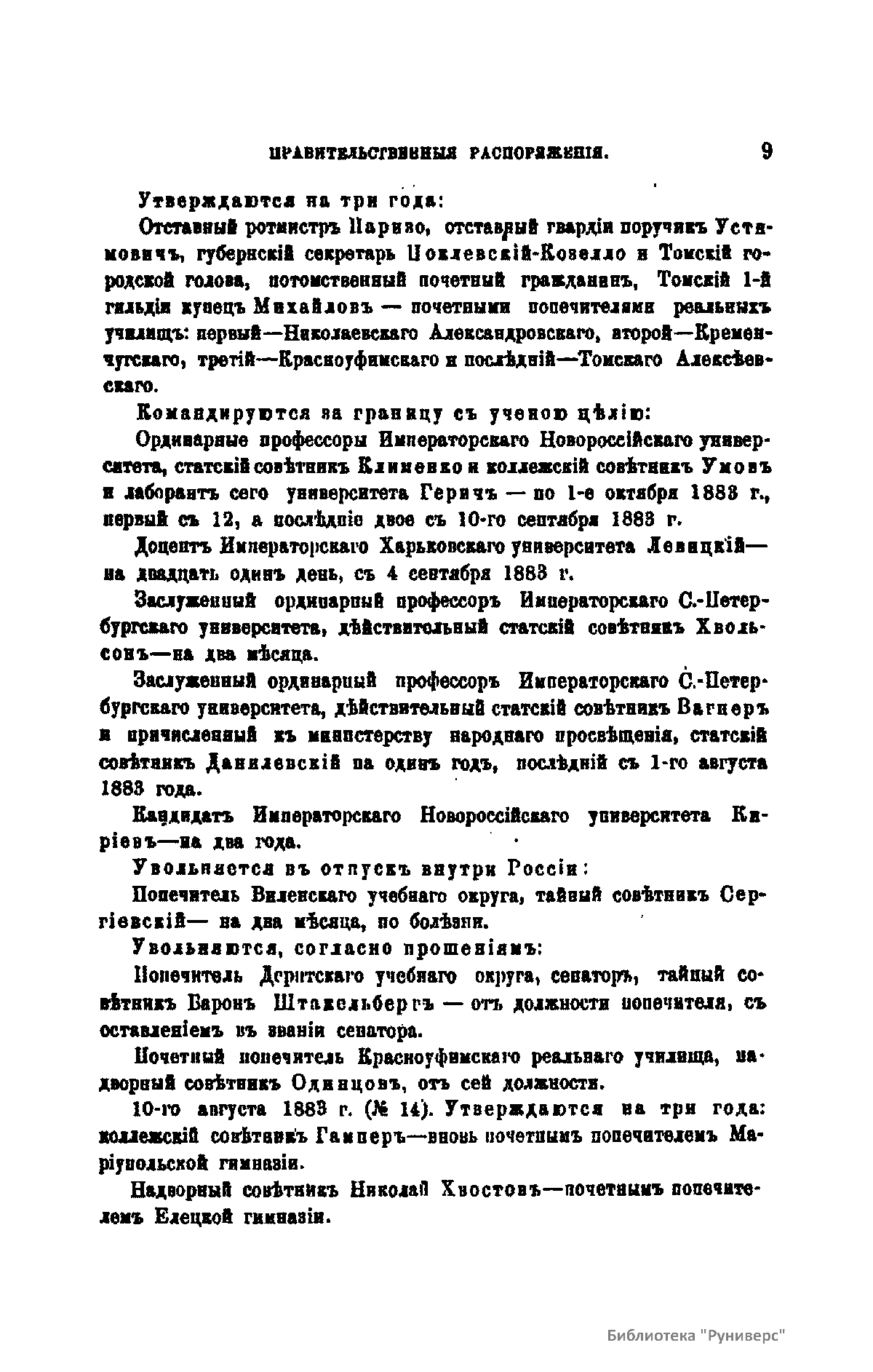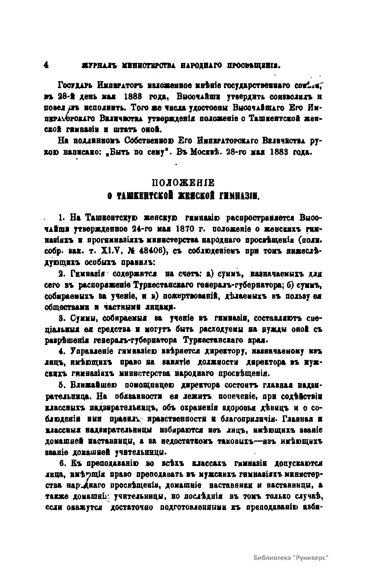 Журнал Министерства народного просвещения выходил с 1834-го по 1917 год. Официальный периодический журнал об успехах просвещения в России. Издатели журнала уверены в том, что «если для каждого человека необходим выход из грубой тьмы невежества и беспрерывное дальнейшее движение к свету, то для народов необходимо попечительное участие правительства в образовании. Только правительство имеет все средства знать и высоту успехов всемирного образования, и настоящие нужды Отечества».