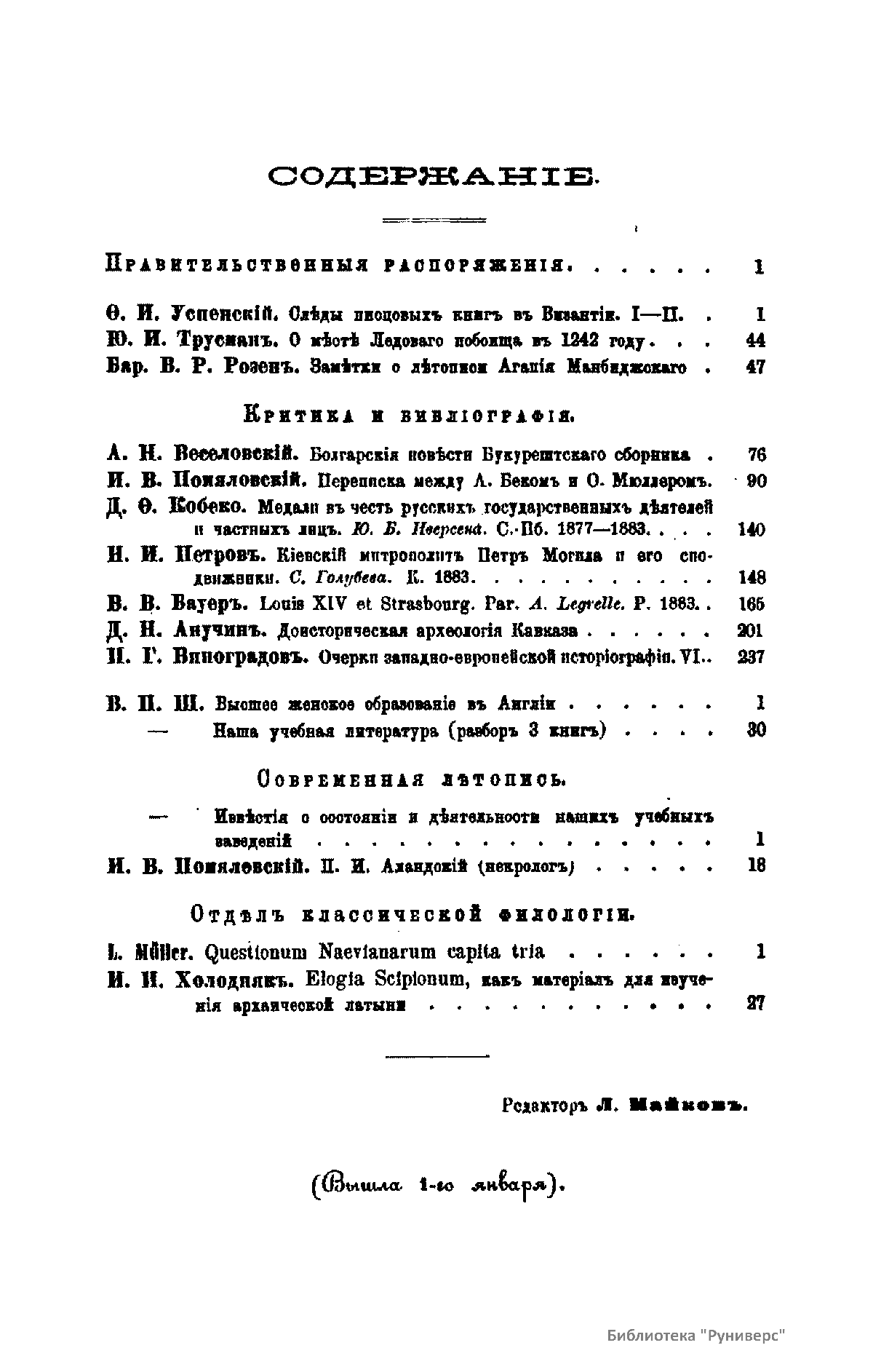 С 1864 года стали выходить указатели к повременным изданиям Министерства народного просвещения начиная с 1803 года.