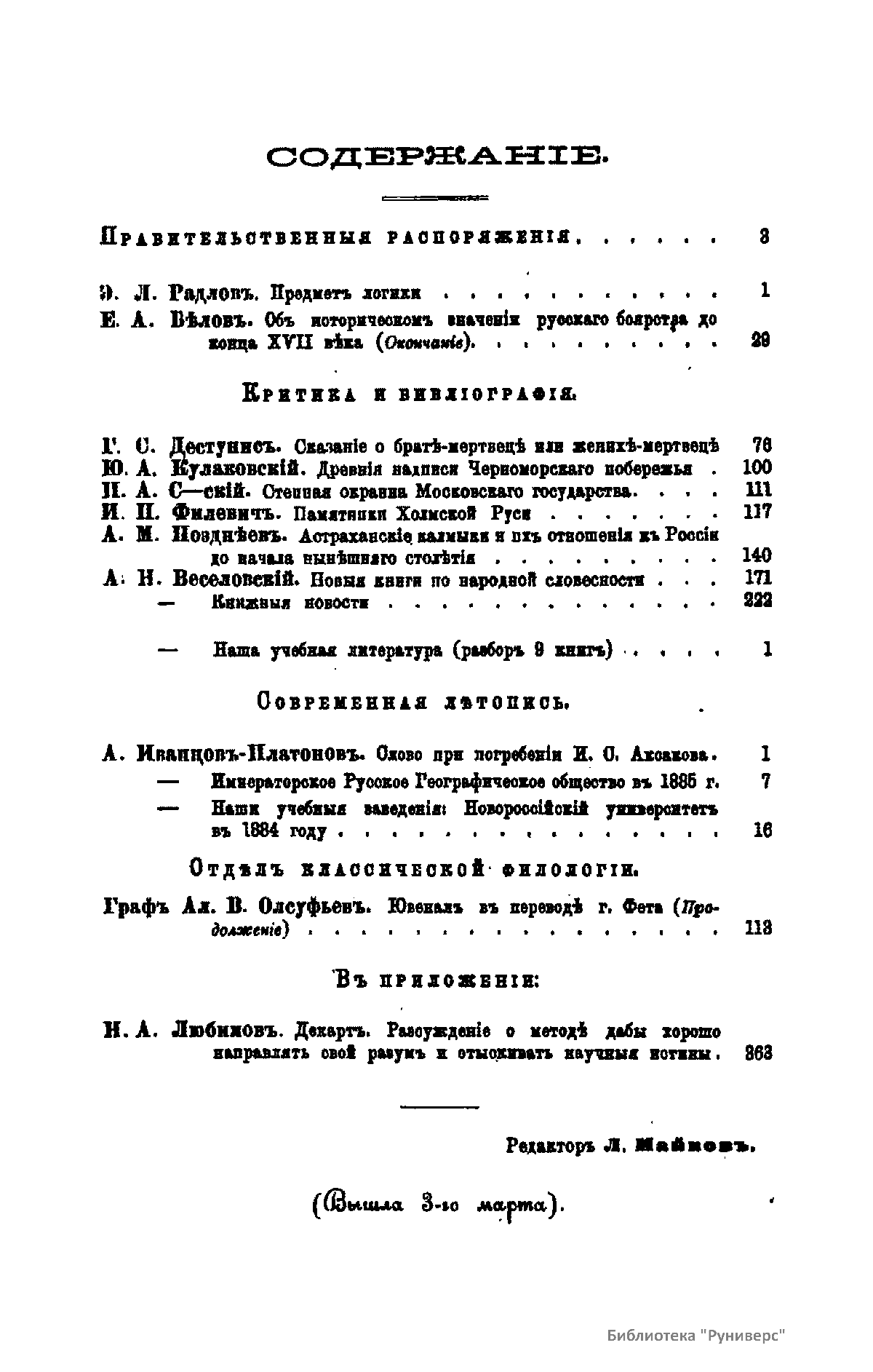 Журнал широкого профиля (гуманитарные науки), но в нем печатались философские статьи, имеется много официального материала, ценного для понимания истории философии в России.