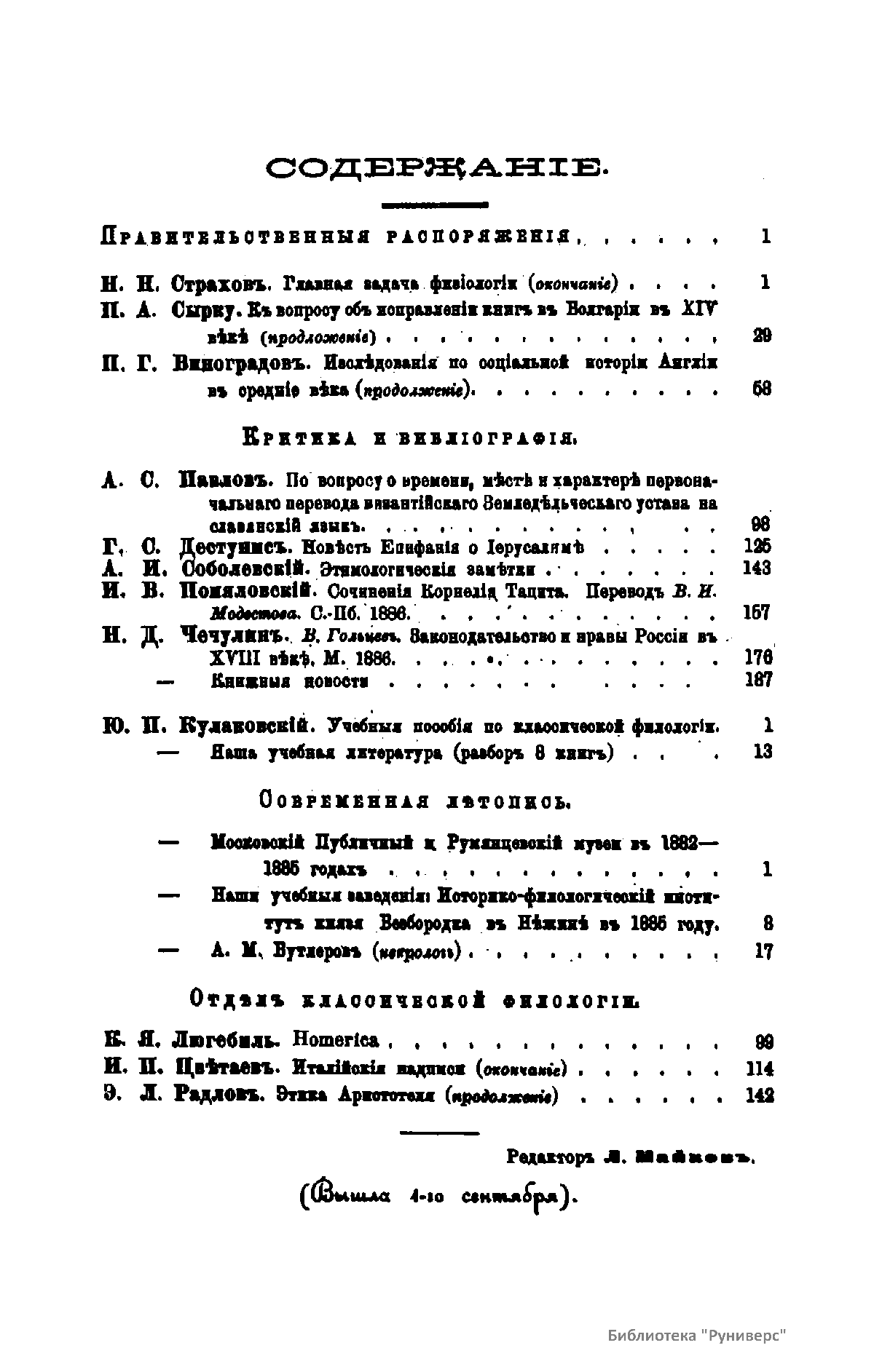 С 1864 года стали выходить указатели к повременным изданиям Министерства народного просвещения начиная с 1803 года.