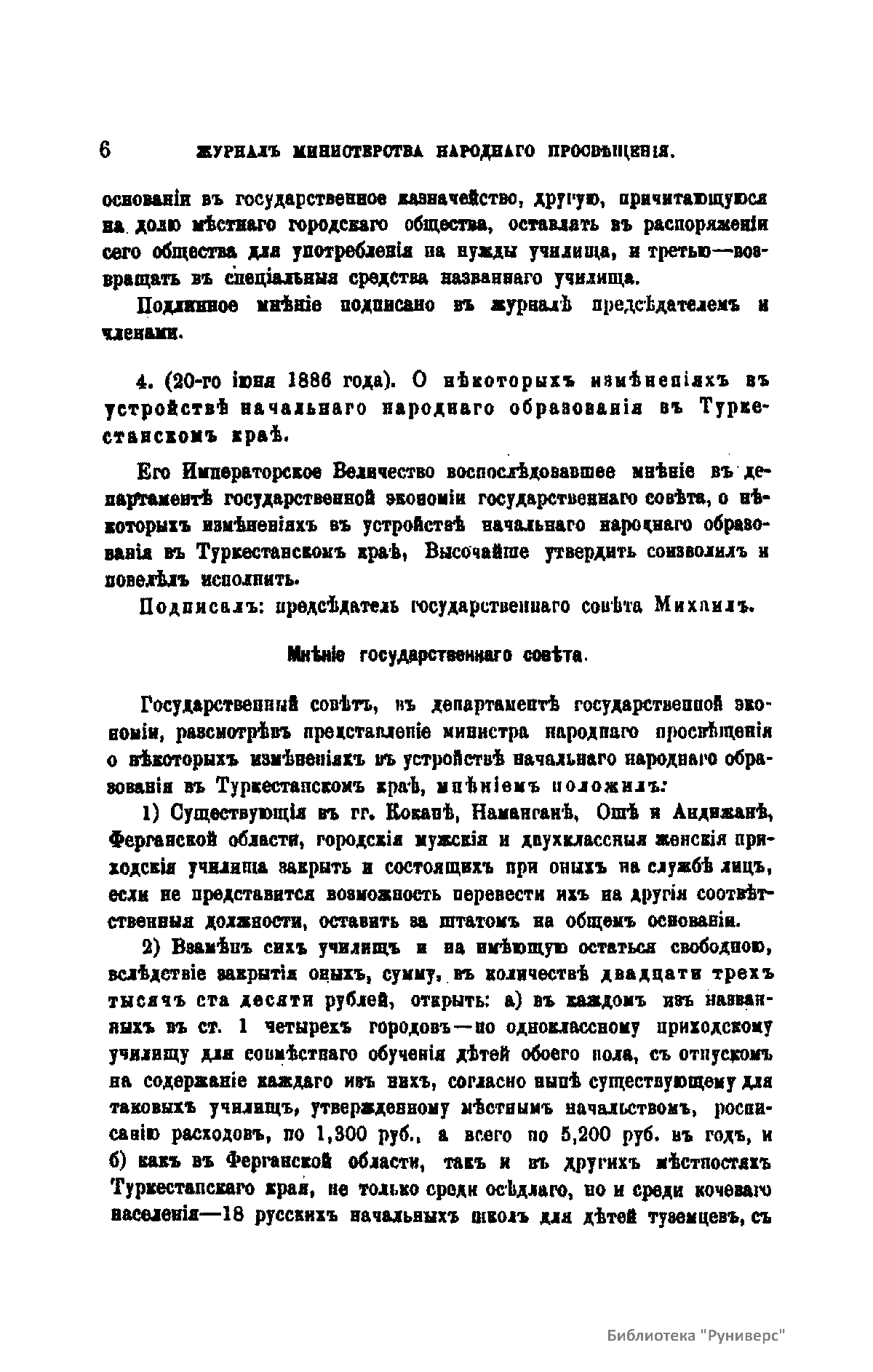 Журнал Министерства народного просвещения выходил с 1834-го по 1917 год. Официальный периодический журнал об успехах просвещения в России. Издатели журнала уверены в том, что «если для каждого человека необходим выход из грубой тьмы невежества и беспрерывное дальнейшее движение к свету, то для народов необходимо попечительное участие правительства в образовании. Только правительство имеет все средства знать и высоту успехов всемирного образования, и настоящие нужды Отечества».