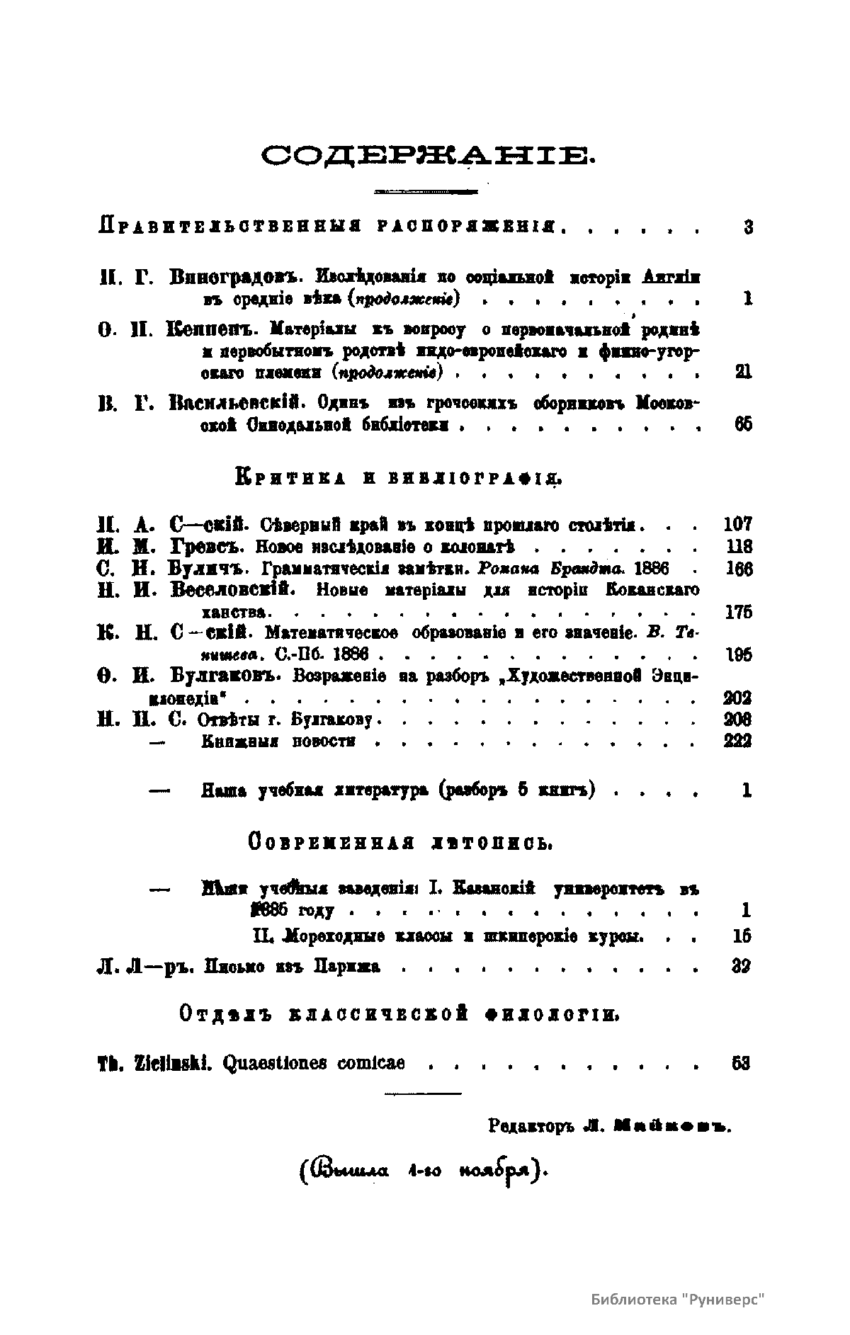 Журнал широкого профиля (гуманитарные науки), но в нем печатались философские статьи, имеется много официального материала, ценного для понимания истории философии в России.